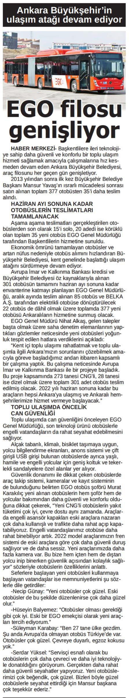 Anayurt / 15.01.2022 EGO filosu genişliyor