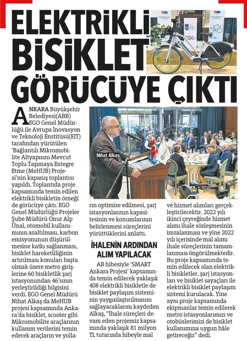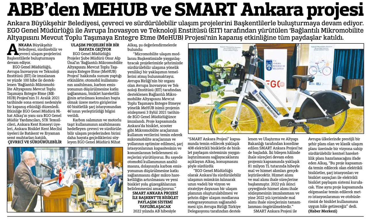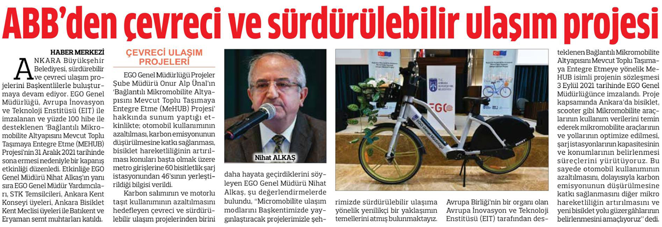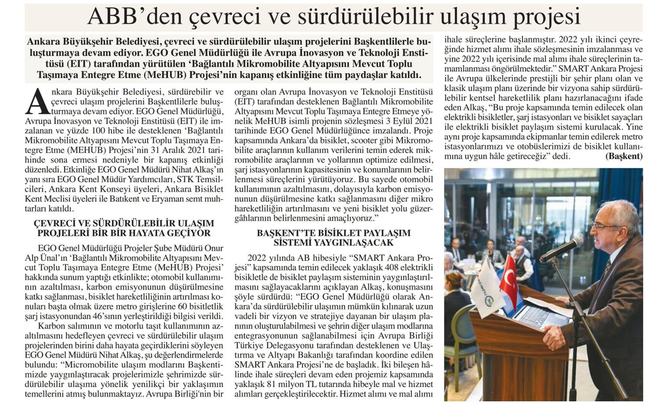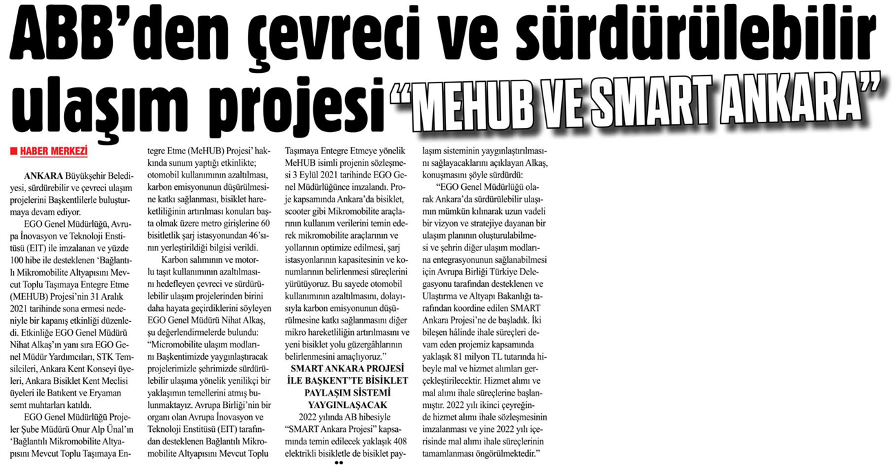 Başkent Gazetesi / 19.01.2022 ABB'den çevreci ve sürdürülebilir ulaşım projesi