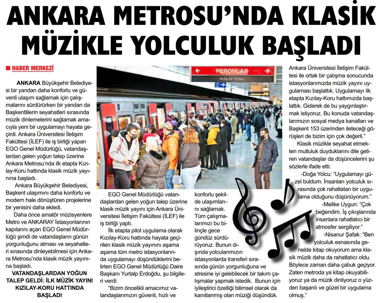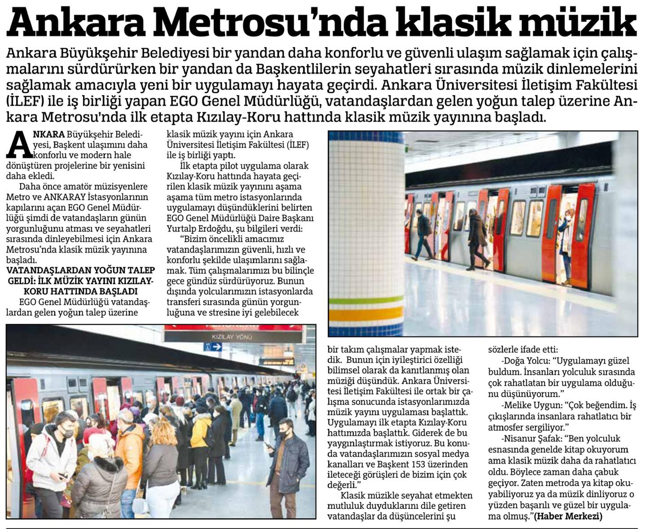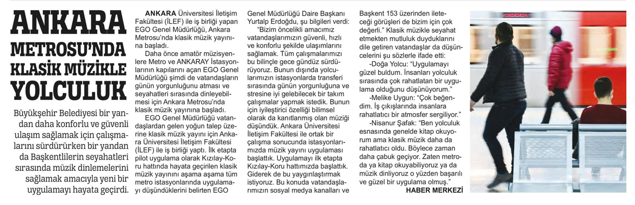 Sonsöz / 21.01.2022 Ankara Metrosu'nda klasik müzikle yolculuk başladı