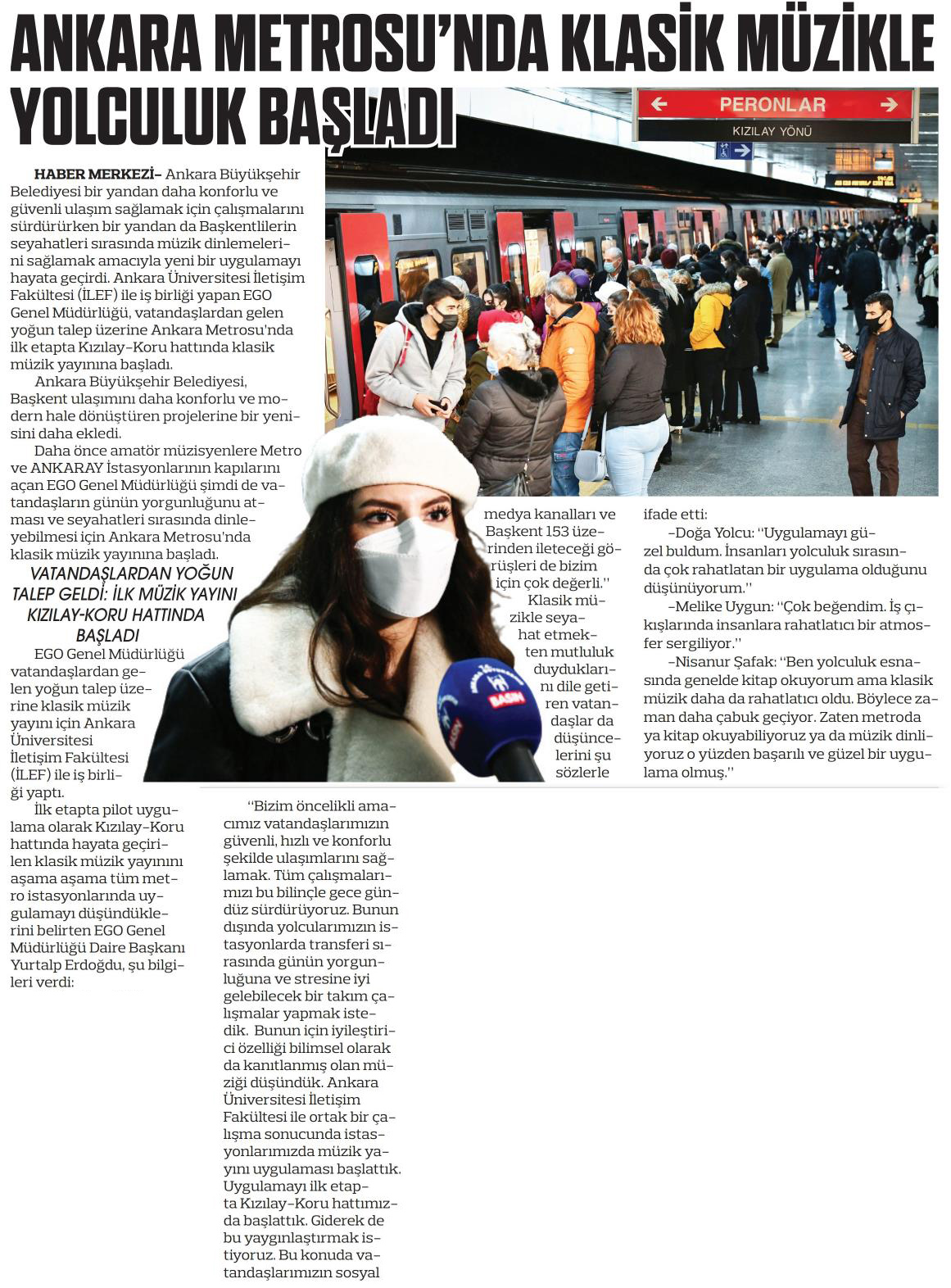 Zafer / 21.01.2022 Ankara Metrosunda klasik müzikle yolculuk başladı