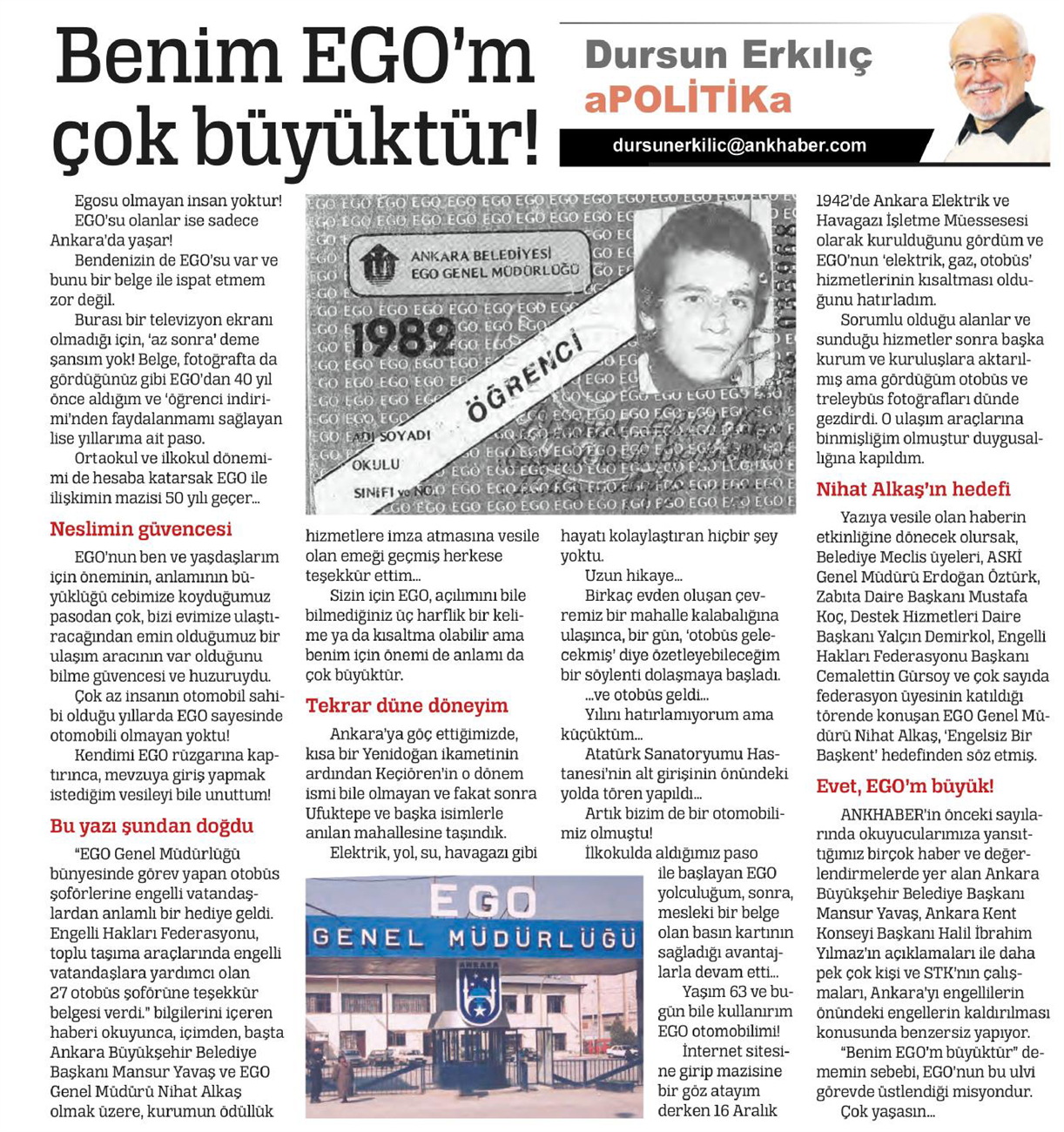 Ankhaber / 16.12.2021 Benim EGO'm çok büyüktür!
