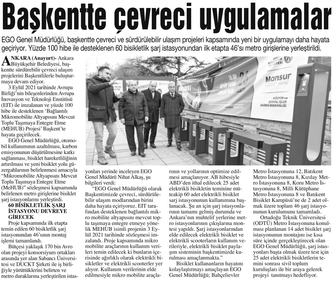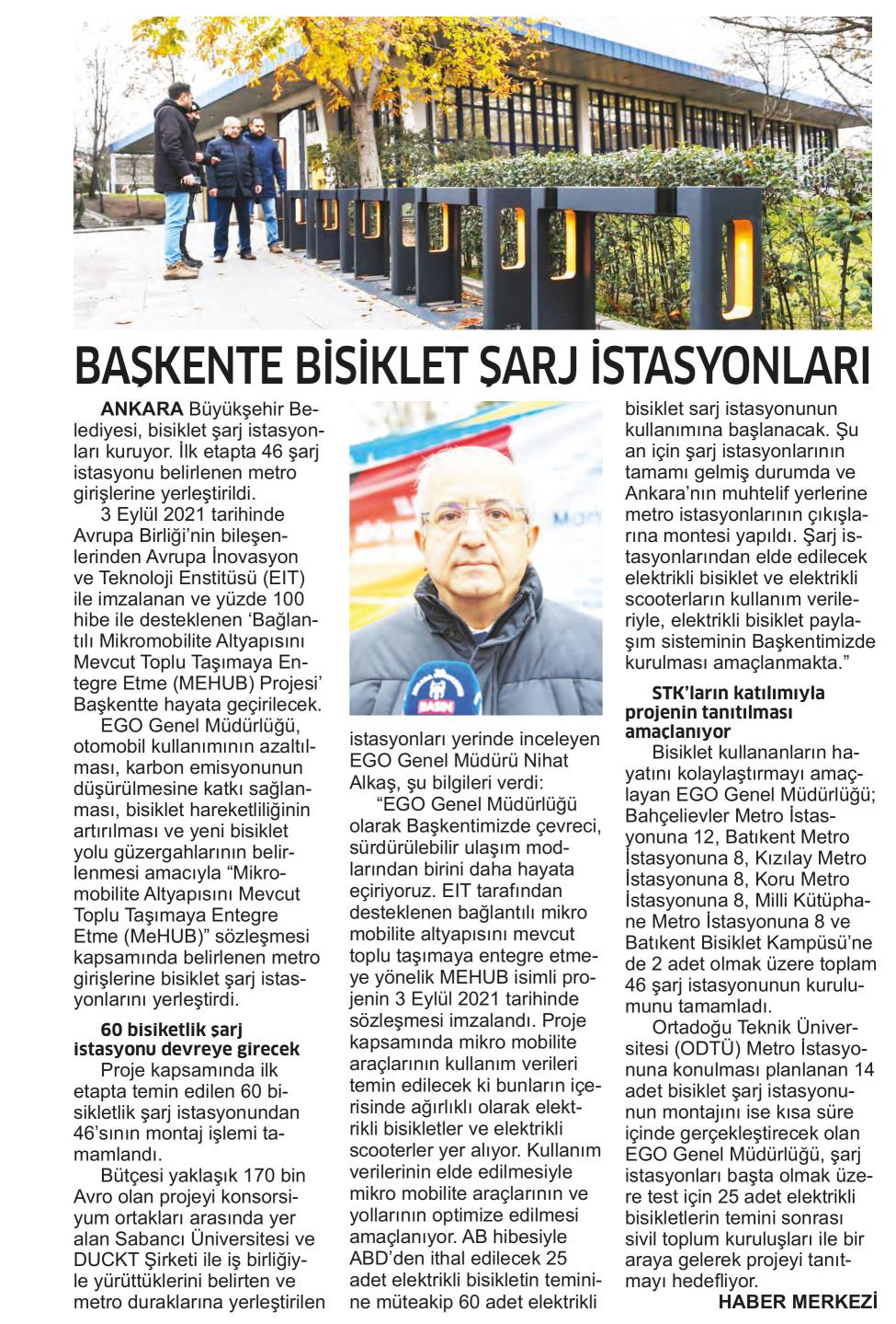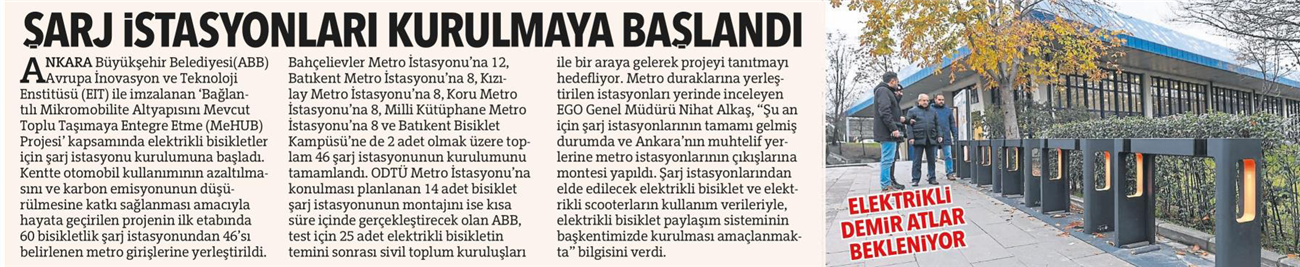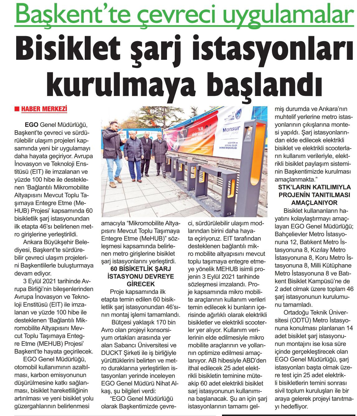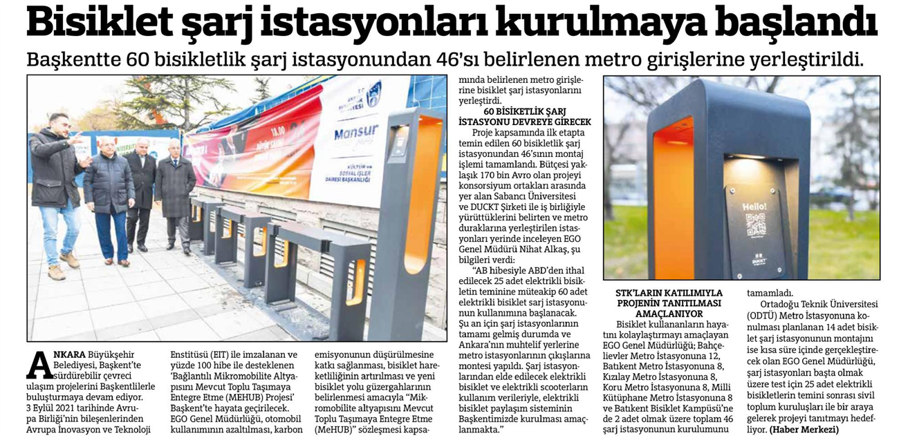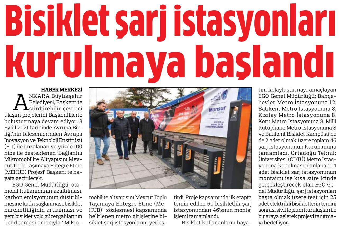 Başkent Gazetesi / 21.12.2021 Başkent'te bisiklet şarj istasyonları kuruluyor