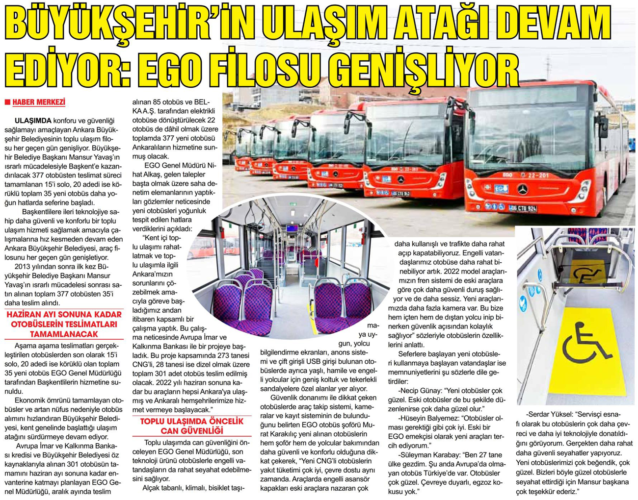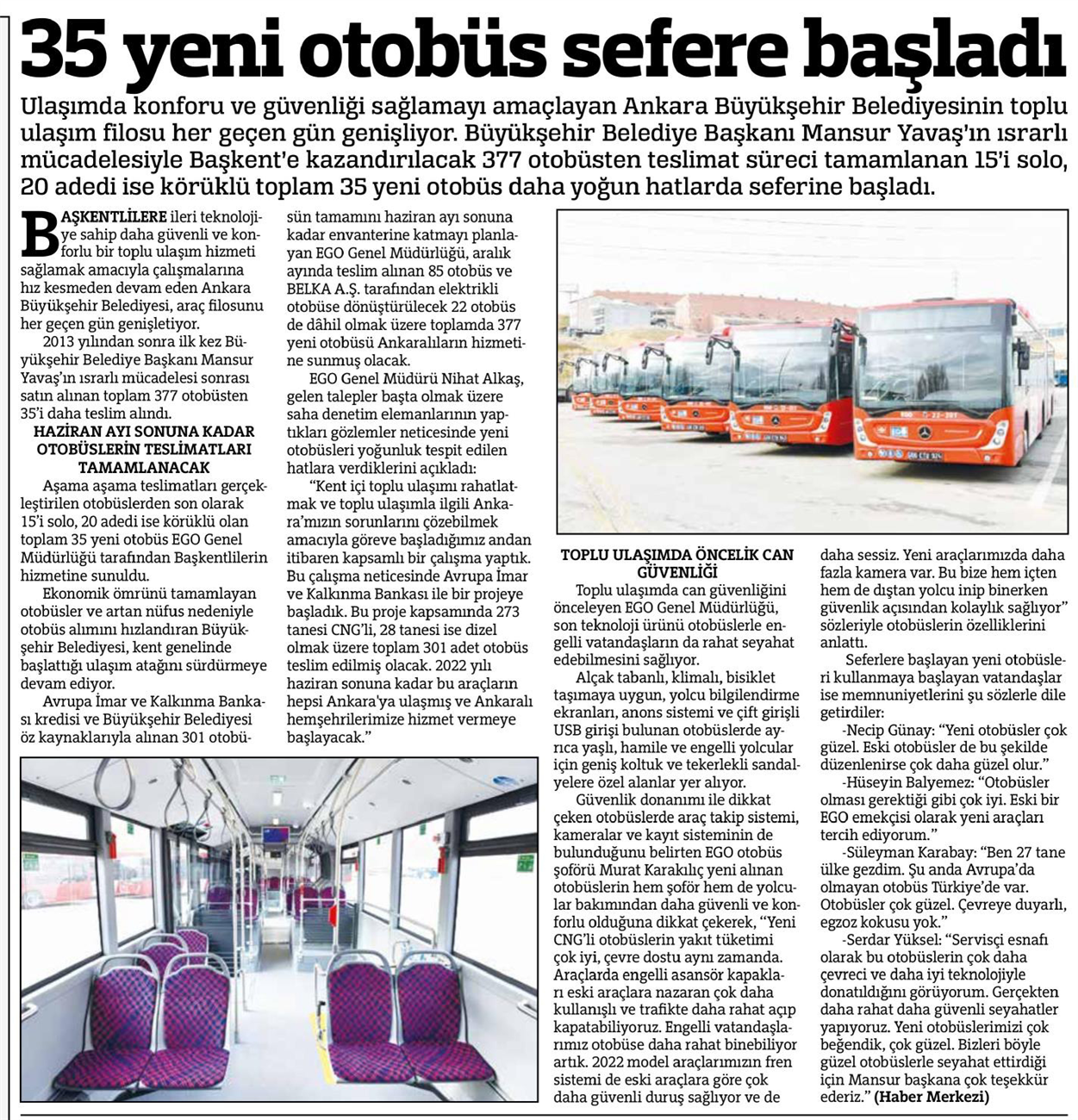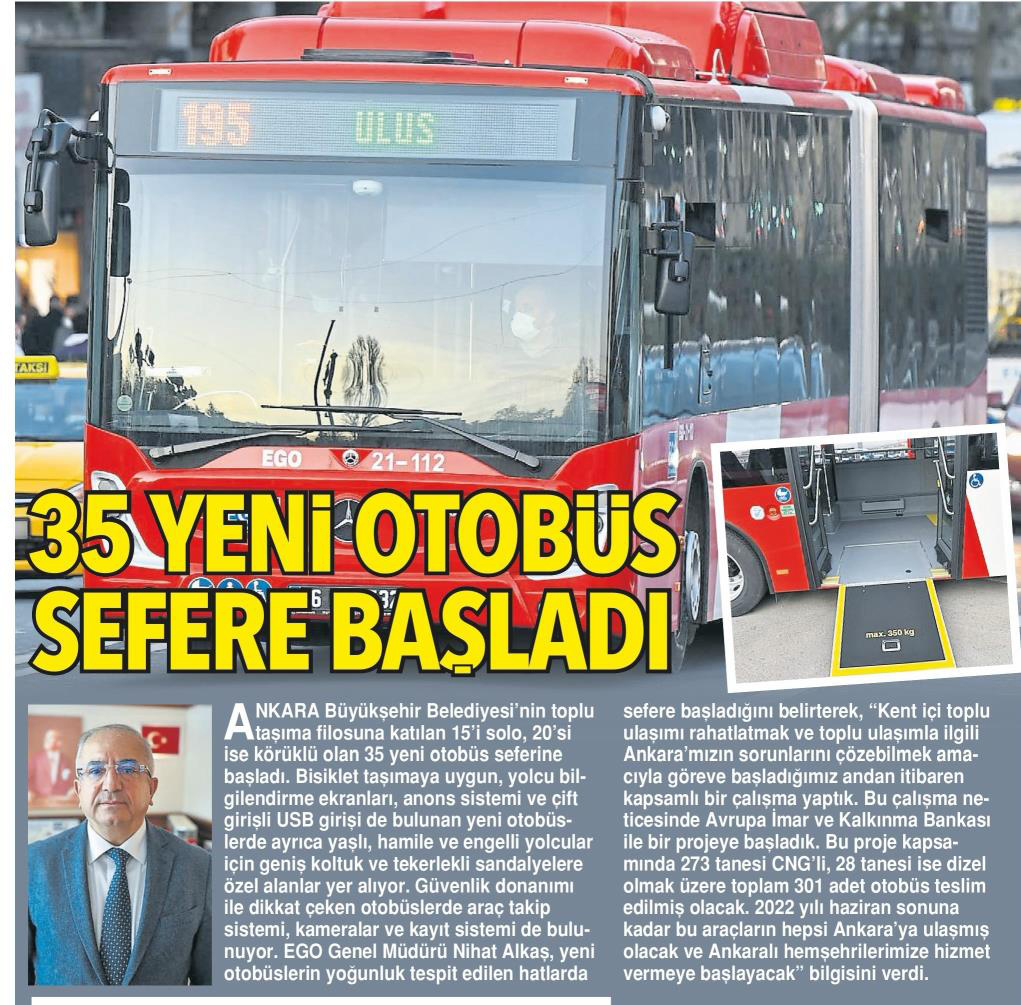 Hürriyet Ankara / 15.01.2022 35 yeni otobüs sefere başladı