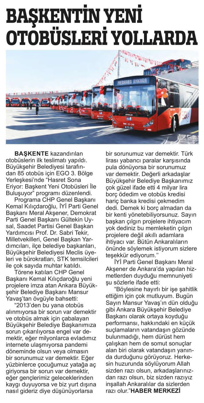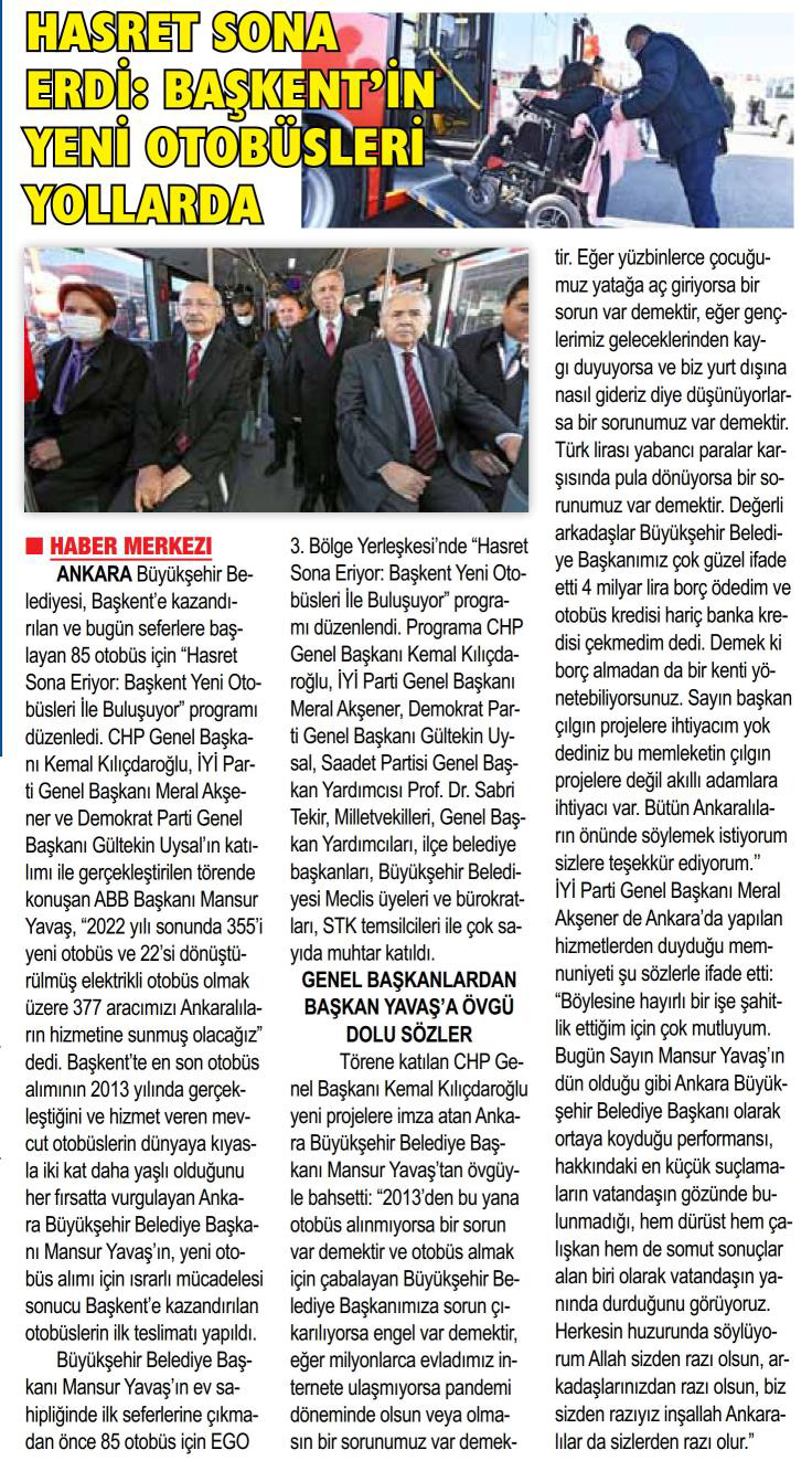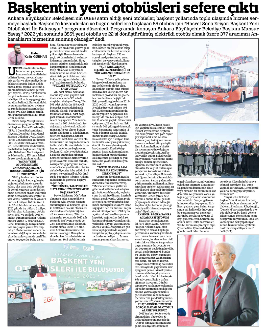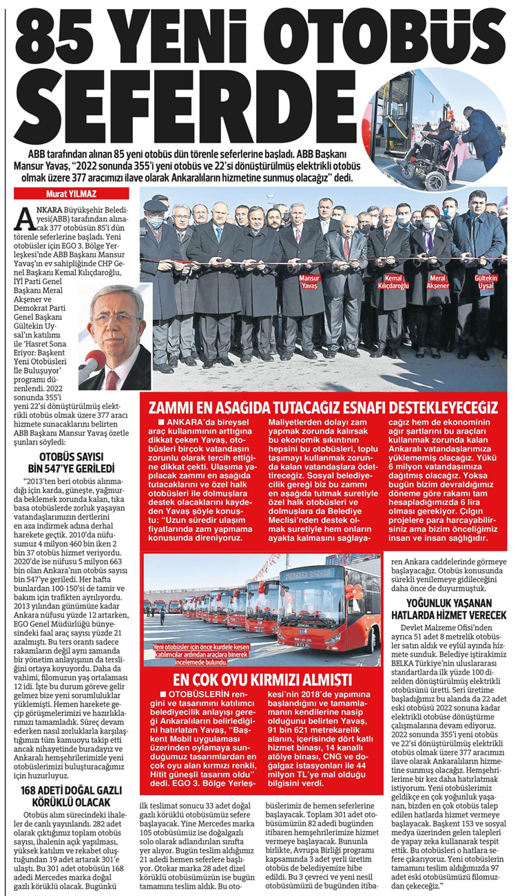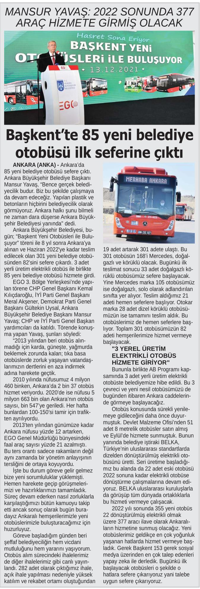Hürriyet Ankara / 14.12.2021 85 yeni otobüs seferde