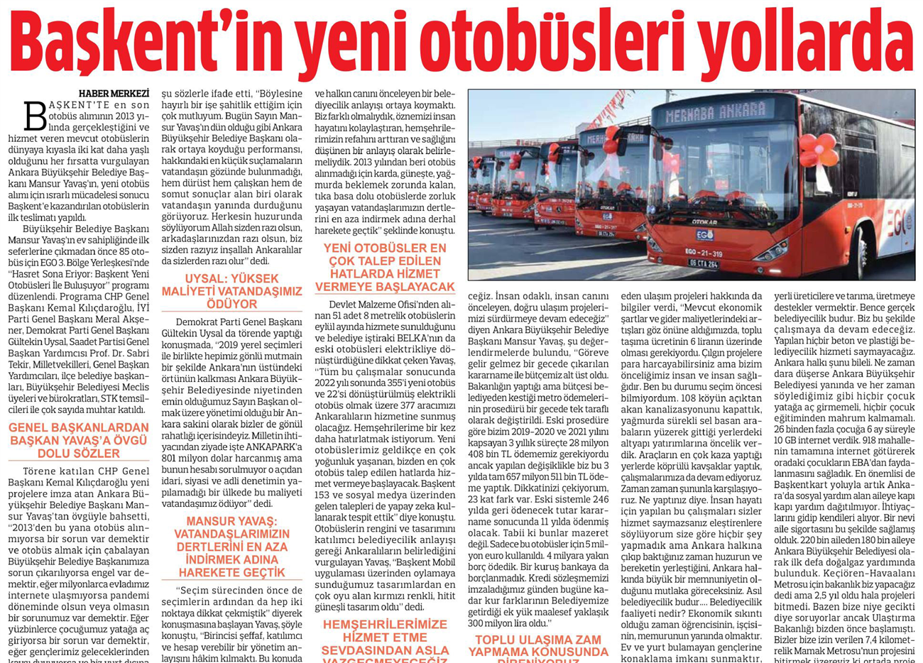 Başkent Gazetesi / 14.12.2021 Başkent’in yeni otobüsleri yollarda
