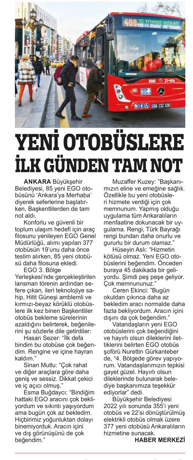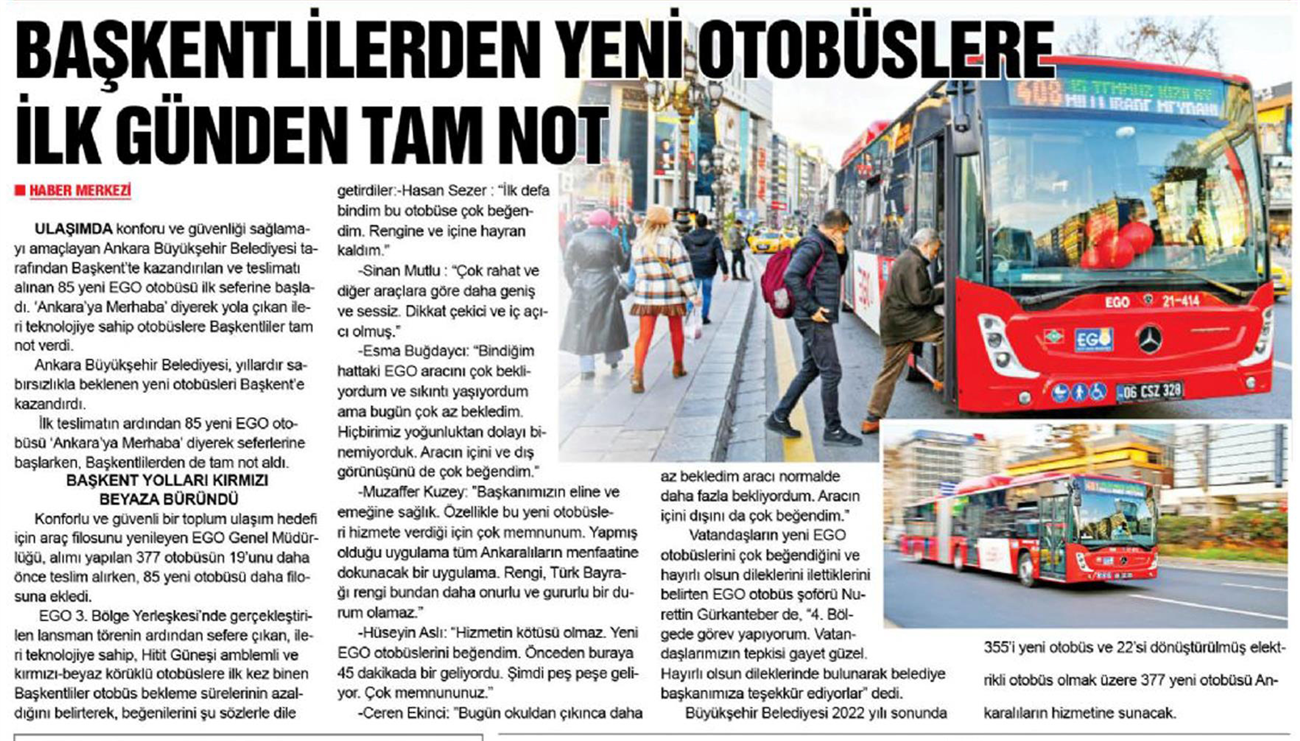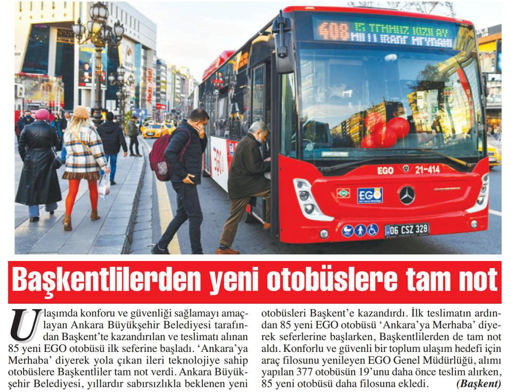Başkent Gazetesi / 15.12.2021 Başkentlilerden yeni otobüslere tam not