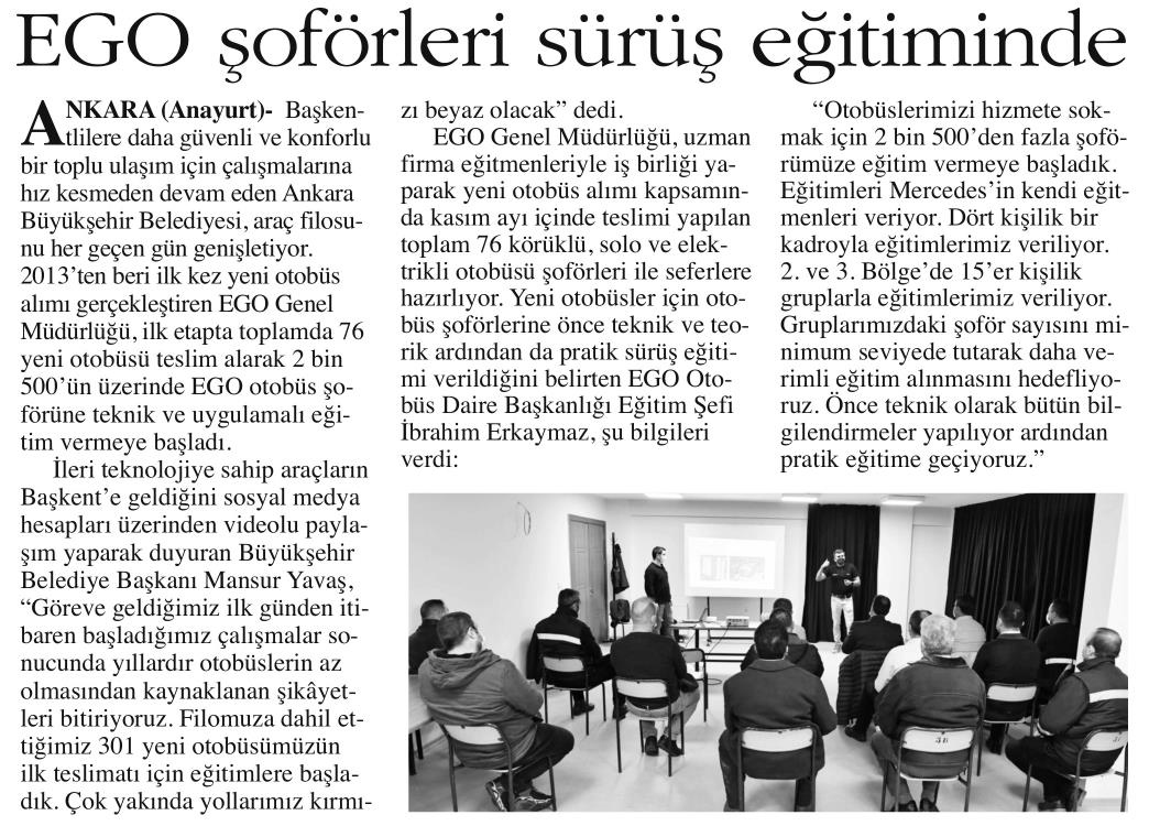 Başkent Gazetesi / 03.12.2021 EGO şoförleri sürüş eğitiminde