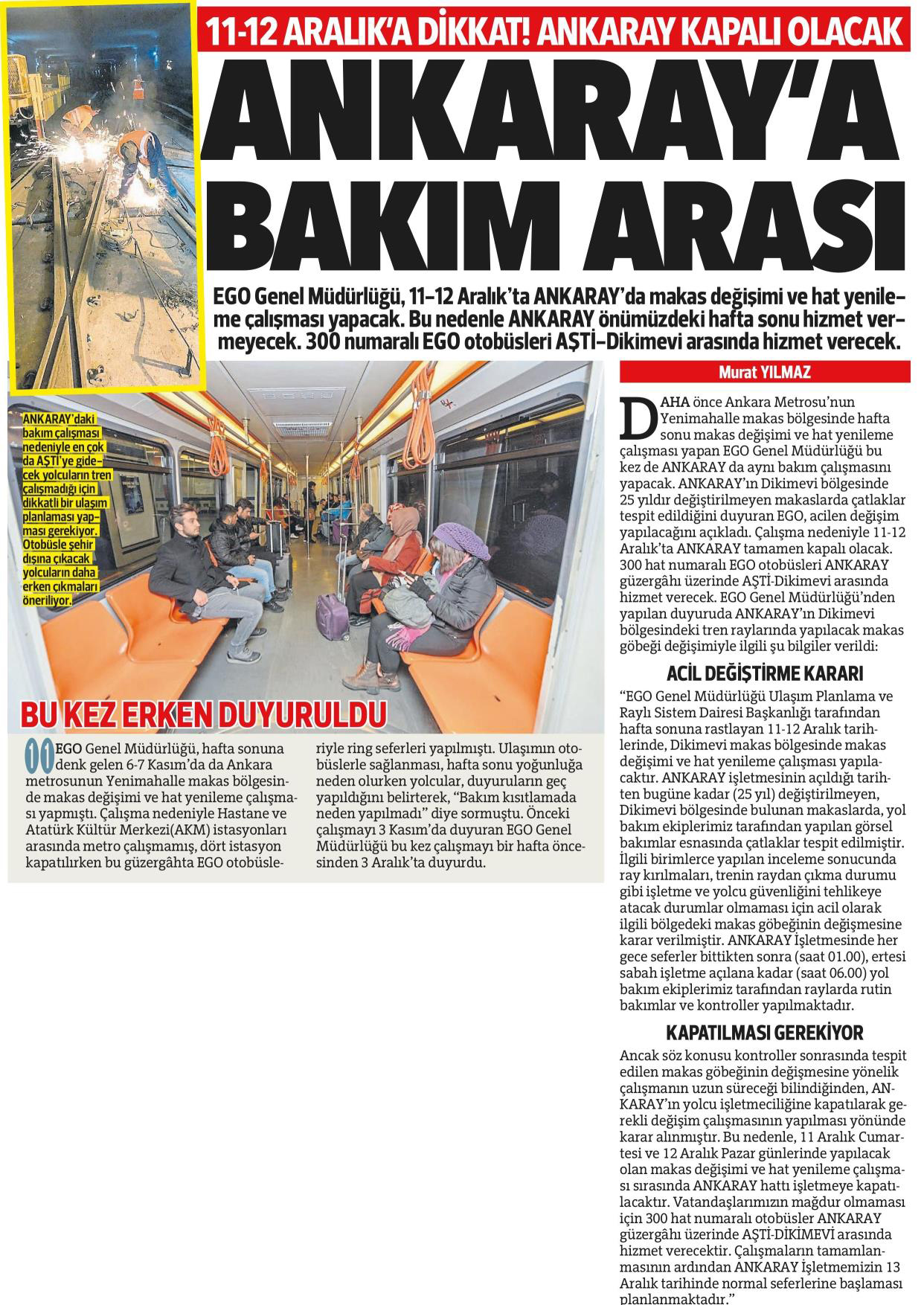 Hürriyet Ankara / 04.12.2021 Ankaray'a bakım arası
