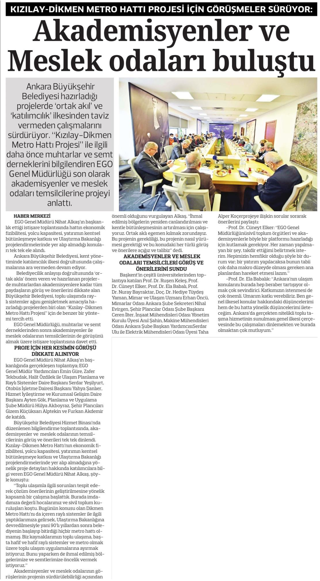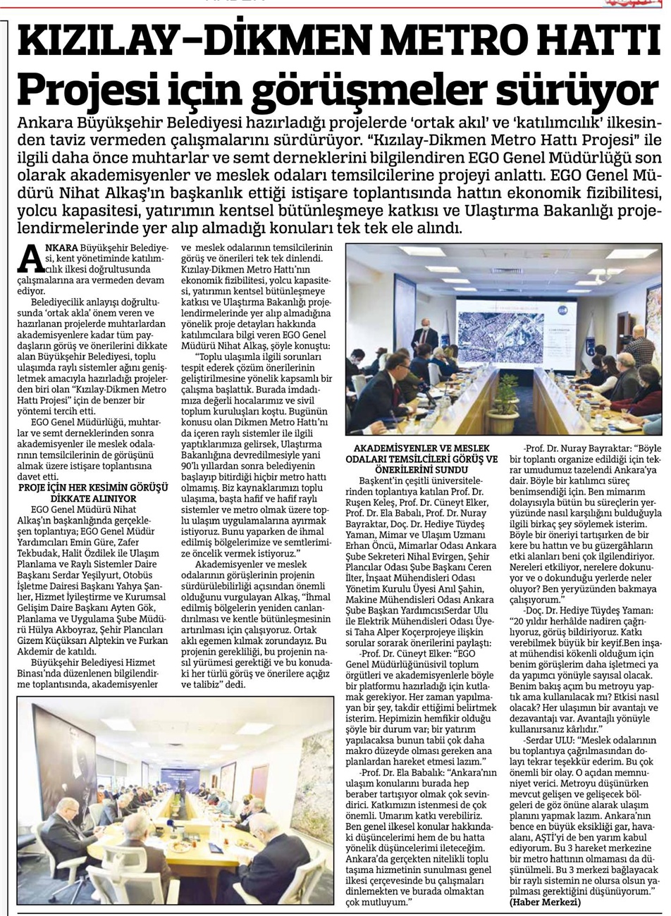 Hürriyet Ankara / 06.12.2021 Kızılay-Dikmen Metro Hattına Akademik Bakış