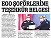 Ticari Hayat / 08.12.2021 EGO şoförlerine teşekkür belgesi