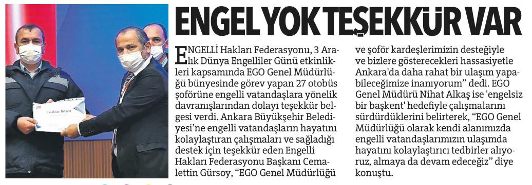 Hürriyet Ankara / 08.12.2021 Engel yok teşekkür var