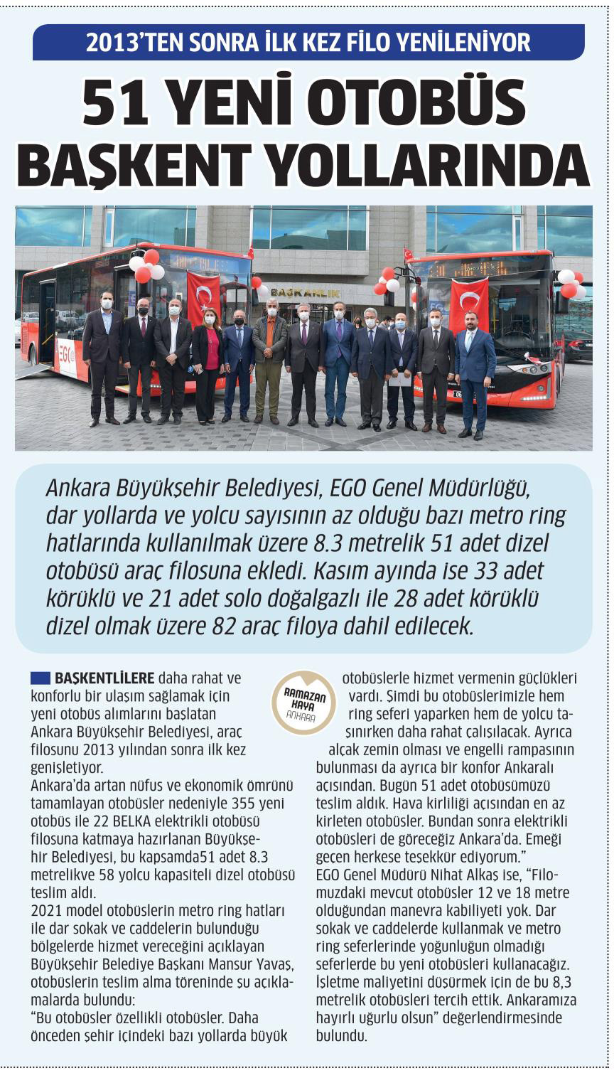 Milli Gazete / 20.10.2021 51 yeni otobüs Başkent yollarında
