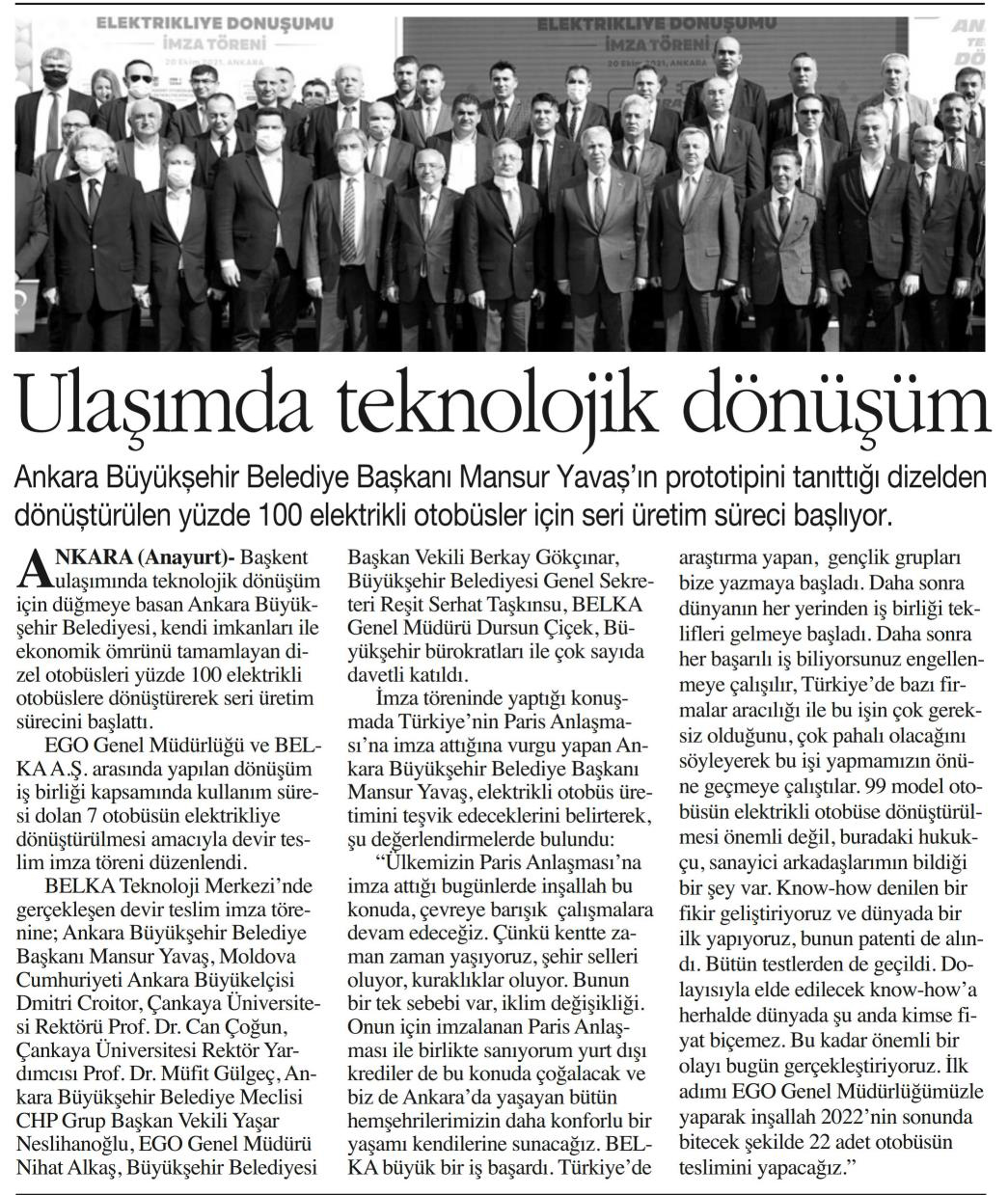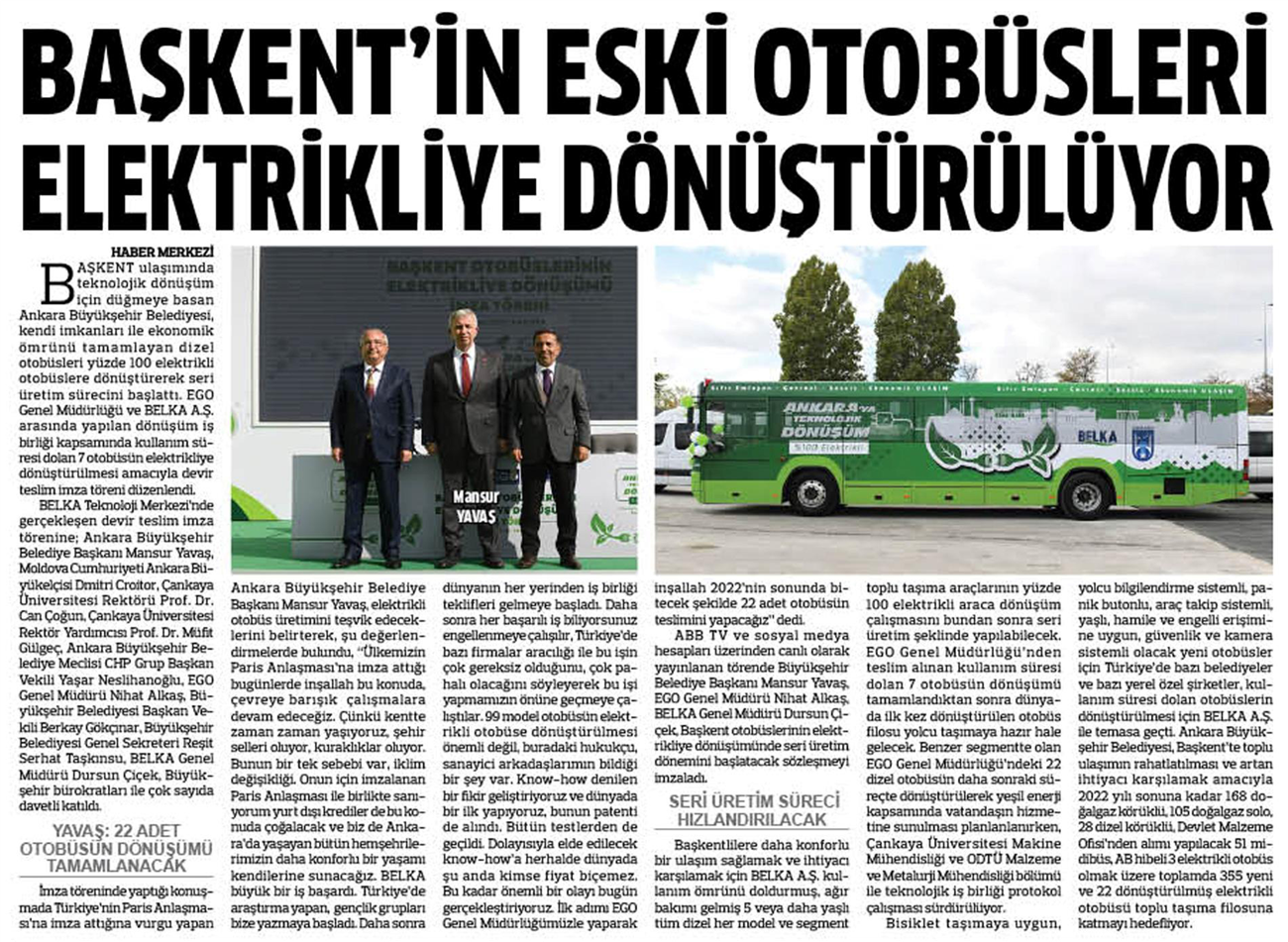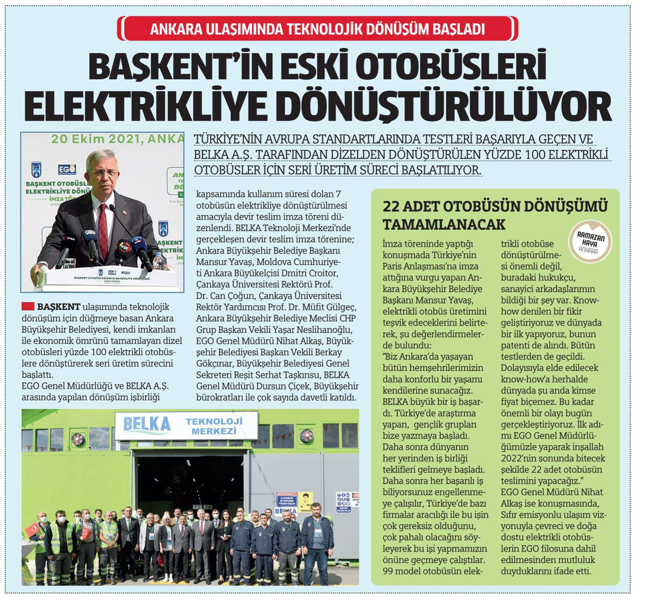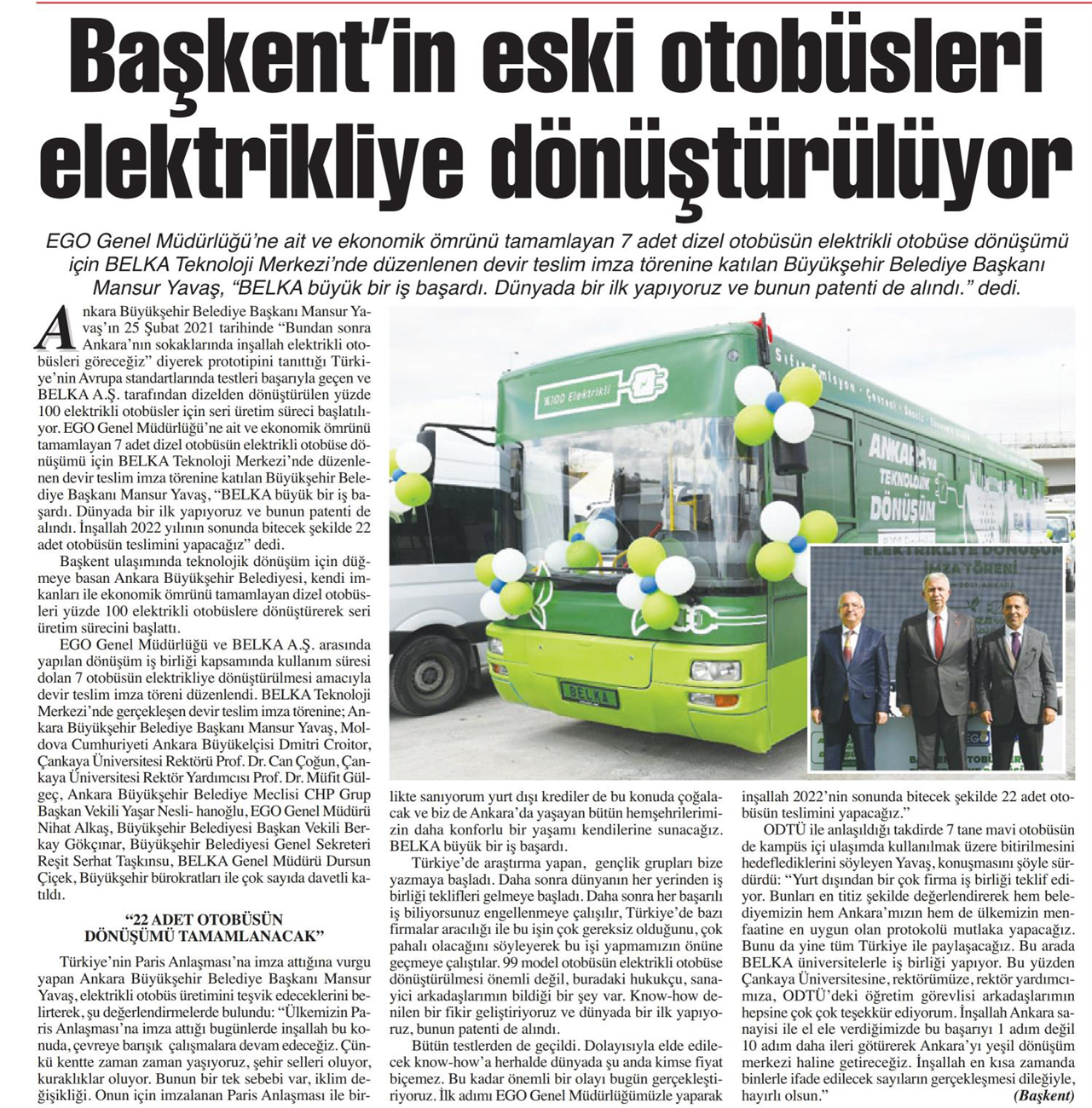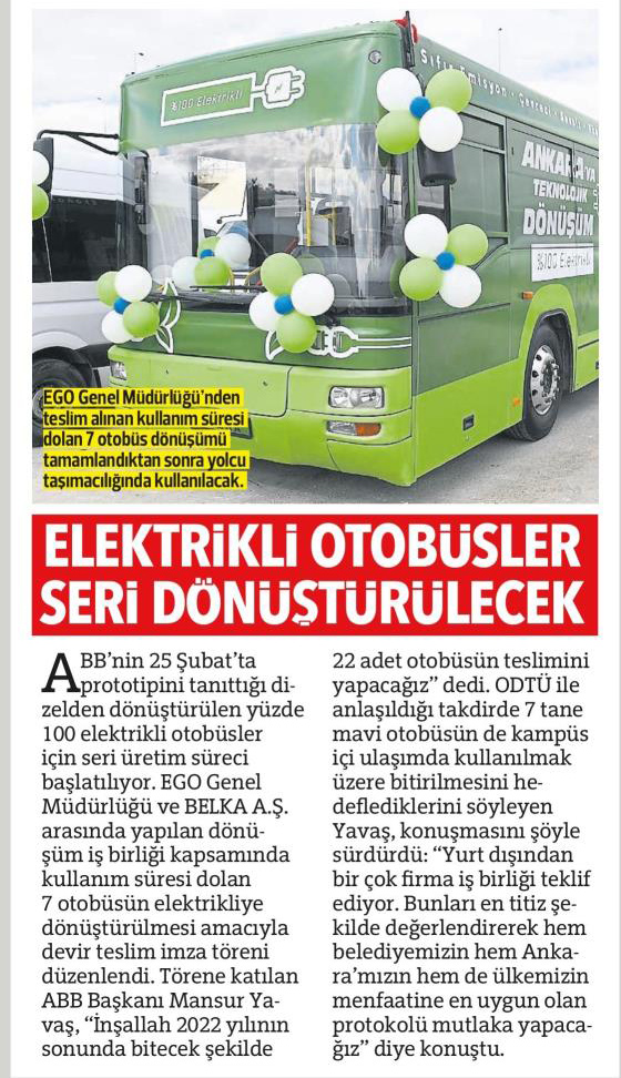 Hürriyet Ankara / 21.10.2021 Elektrikli otobüsler seri dönüştürülecek