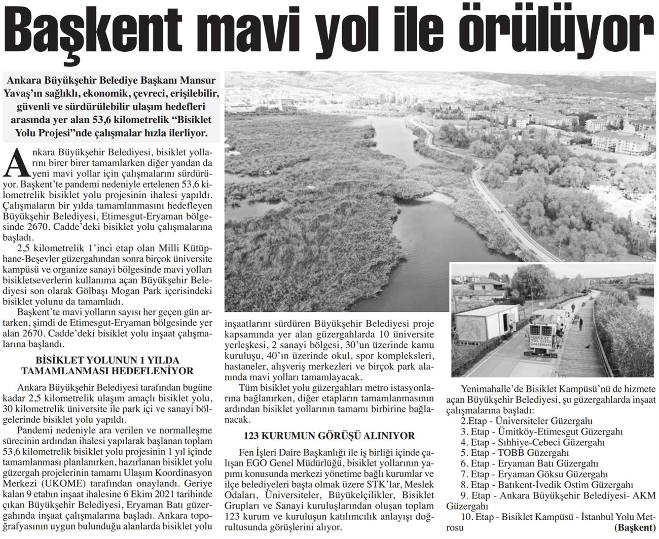 Başkent Gazetesi / 26.10.2021 Başkent mavi yol ile örülüyor