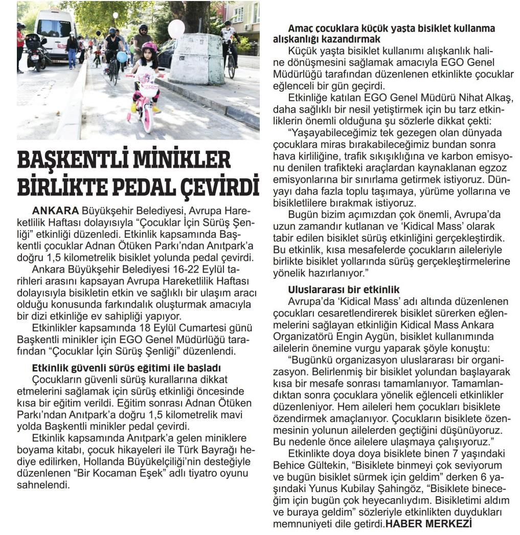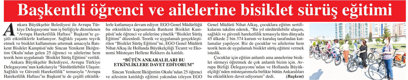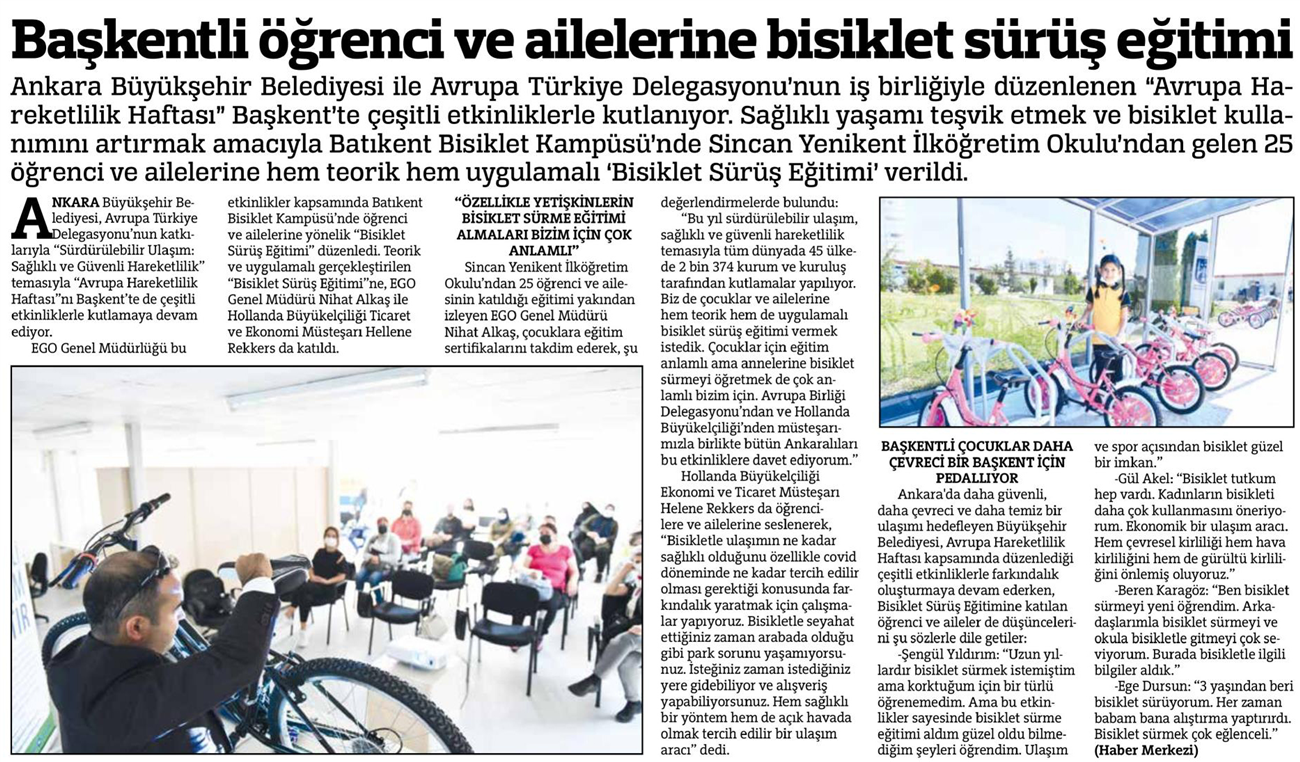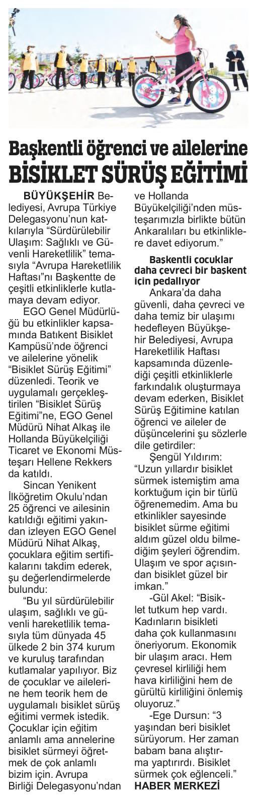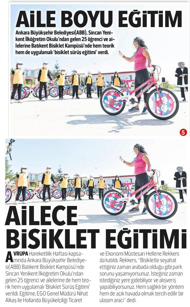 Başkent Gazetesi / 22.09.2021 Başkentli öğrenci ve ailelerine bisiklet sürüş eğitimi