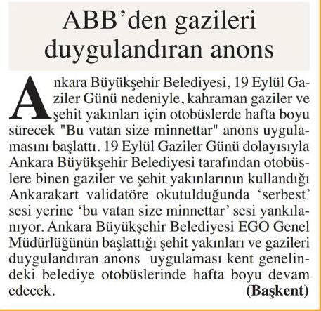 Başkent Gazetesi / 20.09.2021 ABB’den gazileri dugulandıran anons