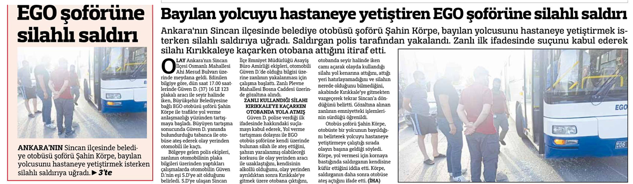 Güçlü Anadolu / 08.09.2021 EGO şoförüne silahlı saldırı