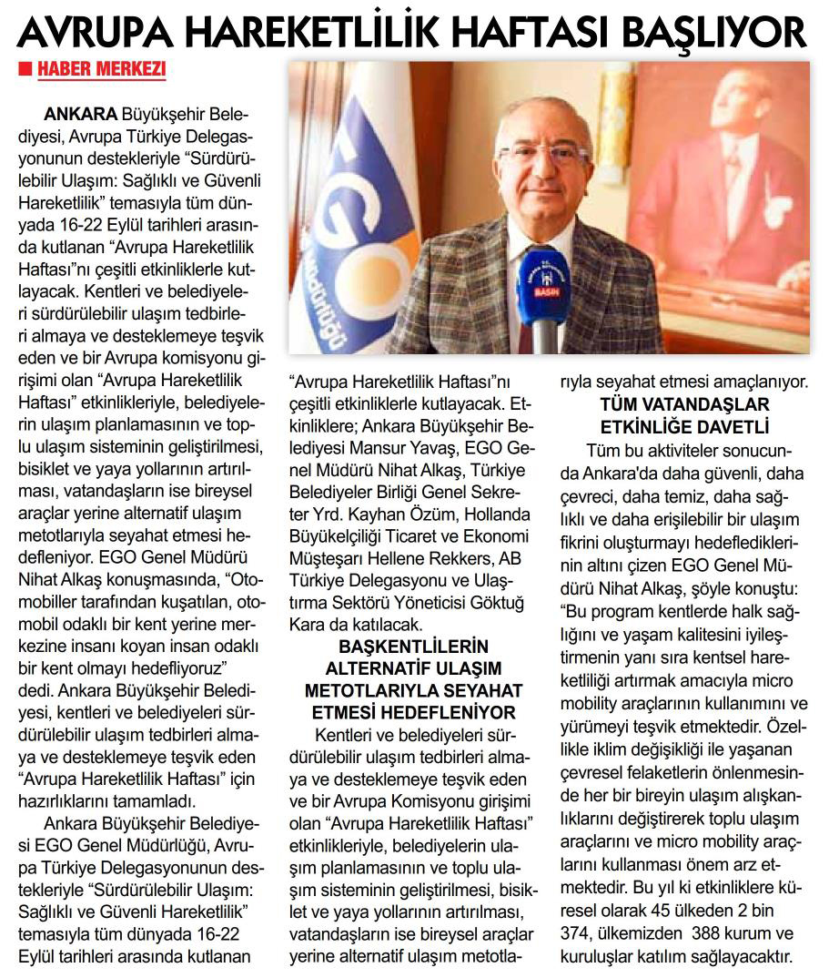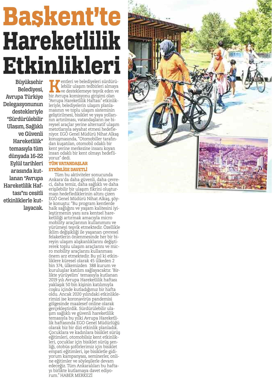 Başkent Gazetesi / 17.09.2021 Avrupa Hareketlilik Haftası başlıyor