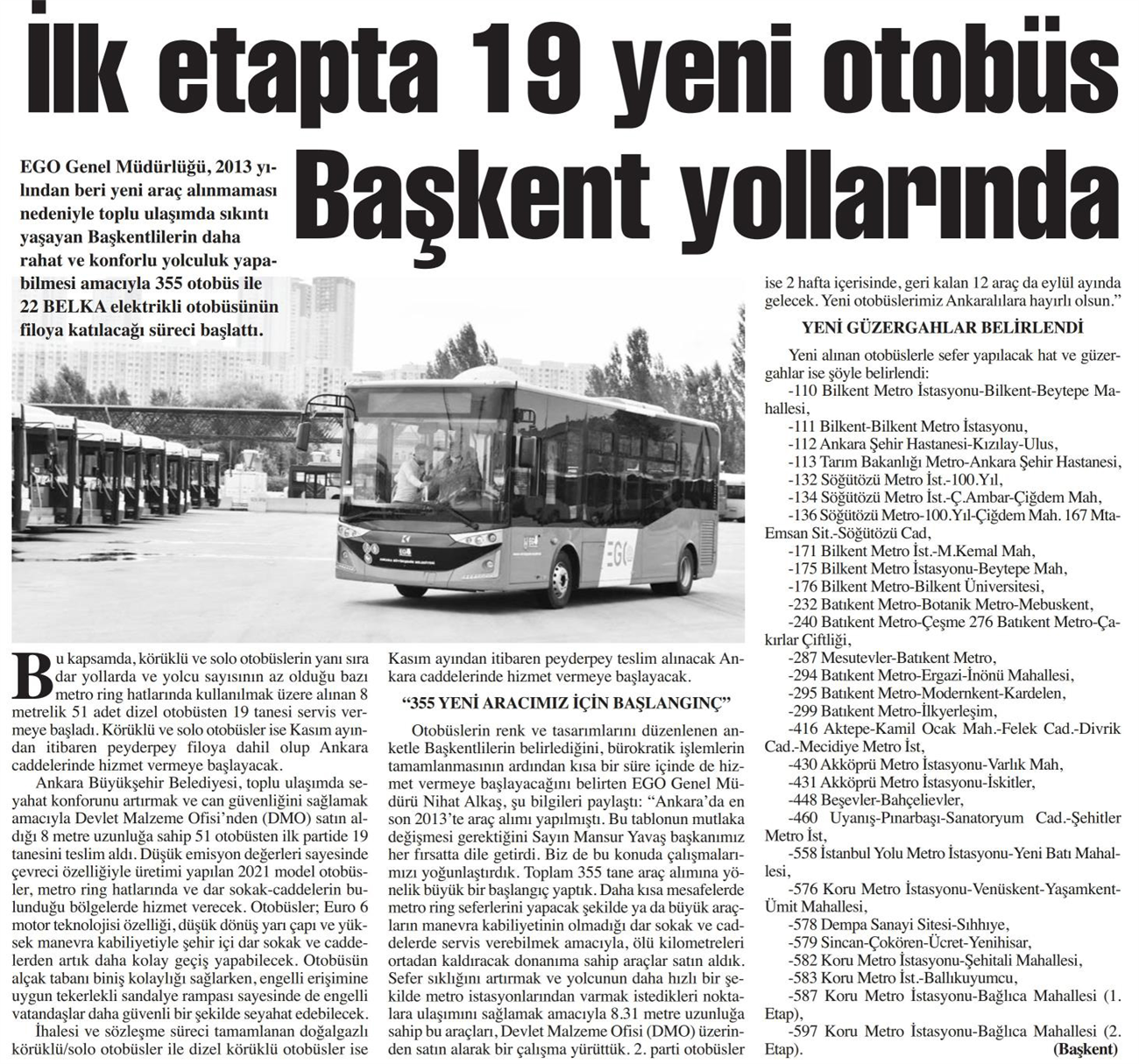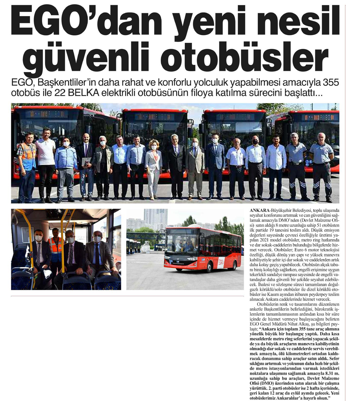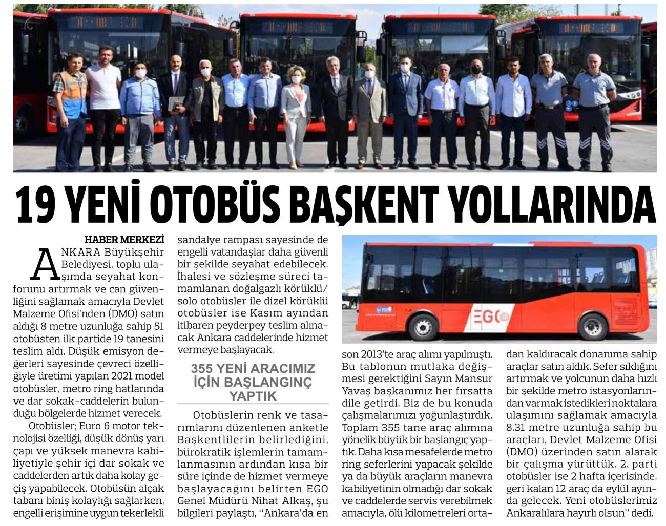 Başkent Gazetesi / 03.09.2021 İlk etapta 19 yeni otobüs Başkent yollarında