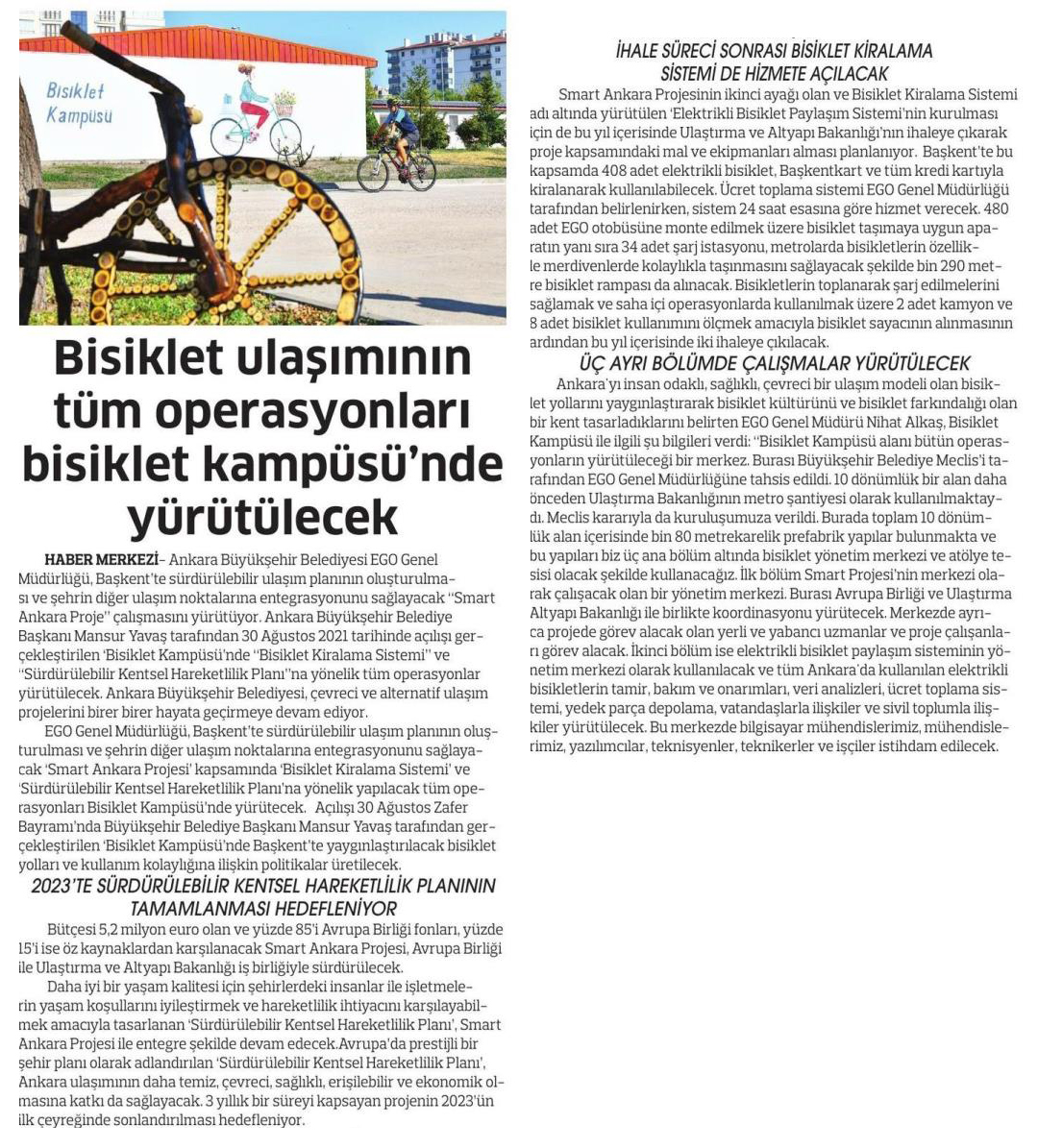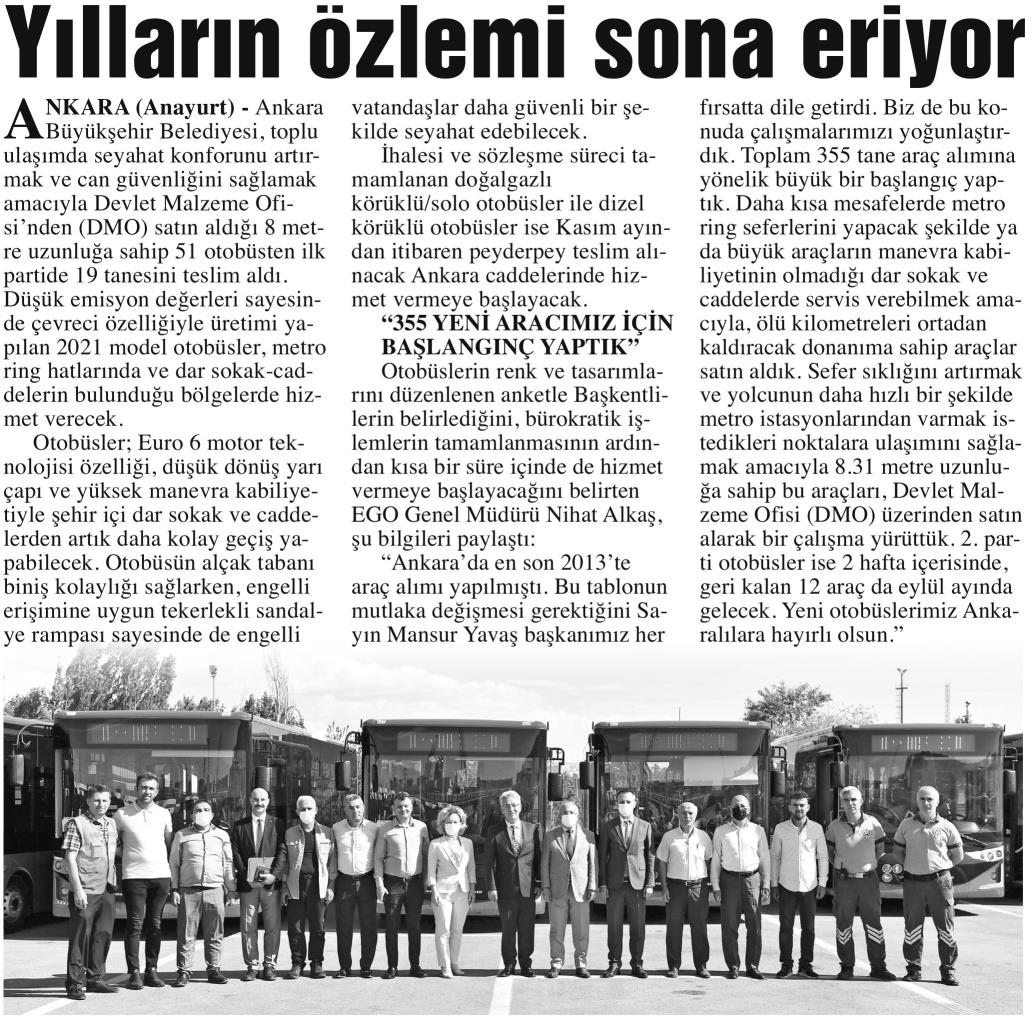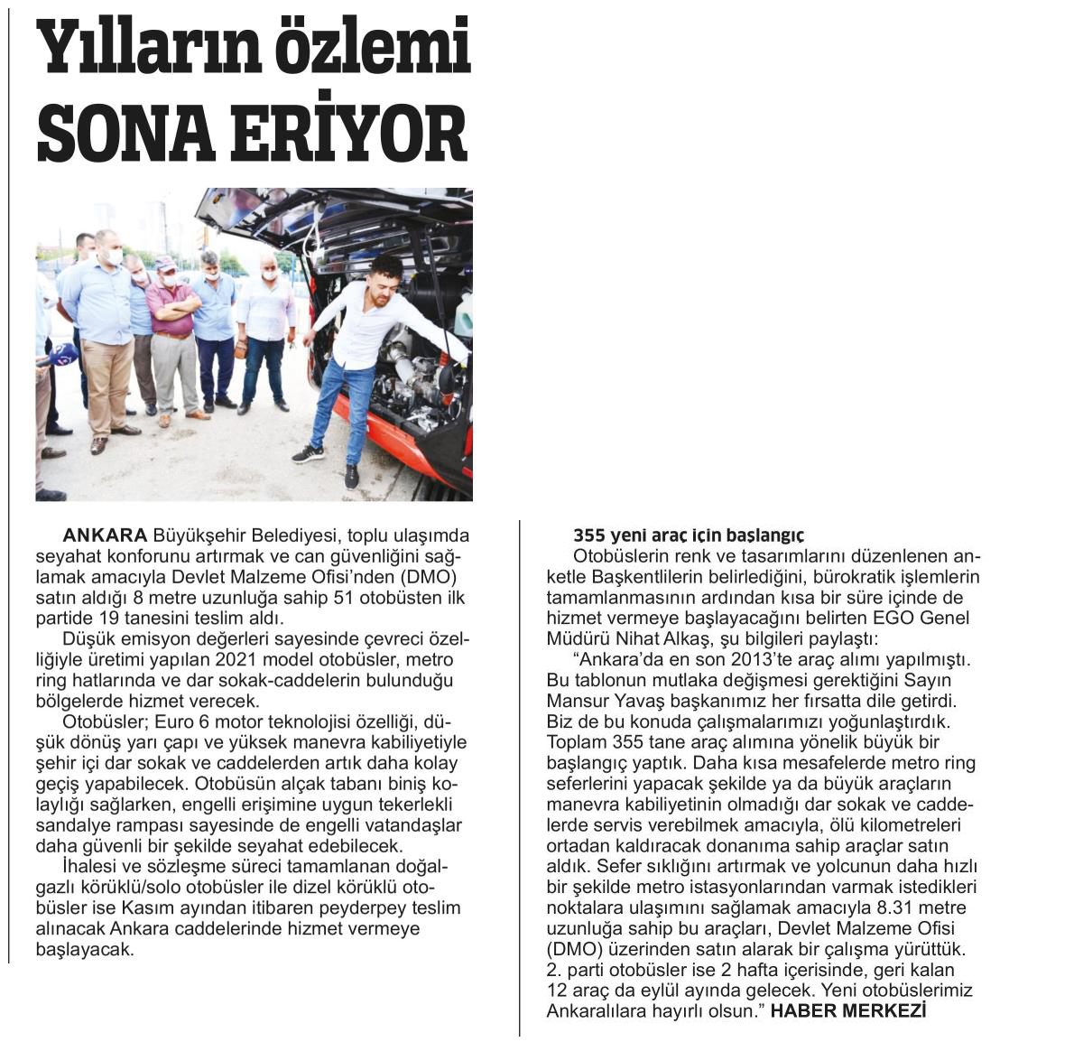 Başkent Gazetesi / 03.09.2021 İlk etapta 19 yeni otobüs Başkent yollarında