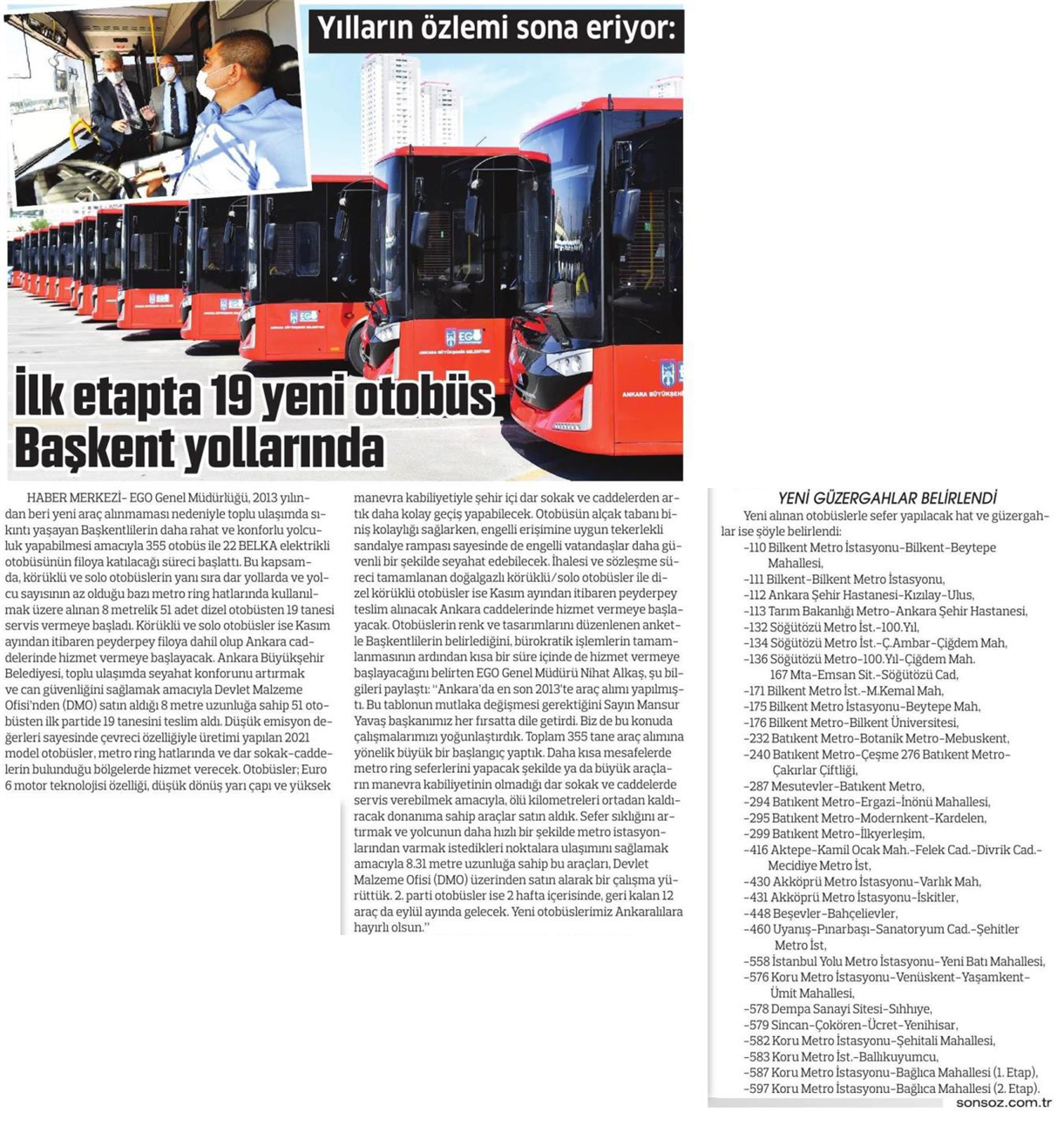 Sonsöz / 03.09.2021 İlk etapta 19 yeni otobüs Başkent yollarında