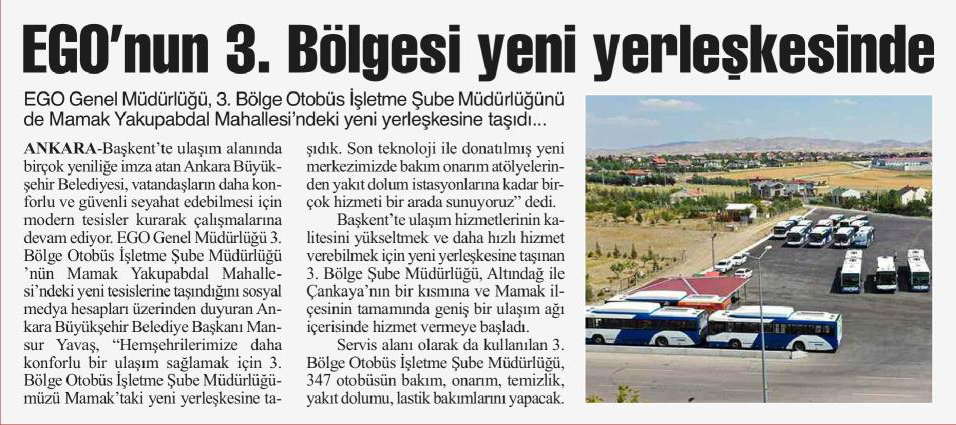 Kentiçi Toplu Taşıma / 06.09.2021 EGO’nun 3. Bölgesi yeni yerleşkesinde