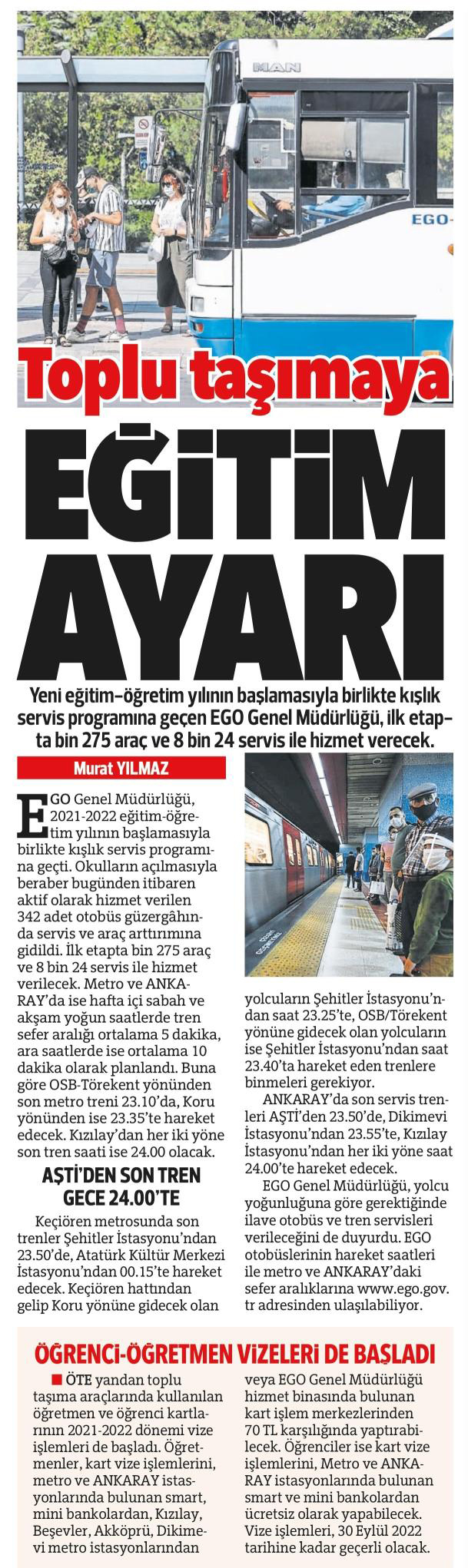Hürriyet Ankara / 06.09.2021 Toplu taşımaya eğitim ayarı