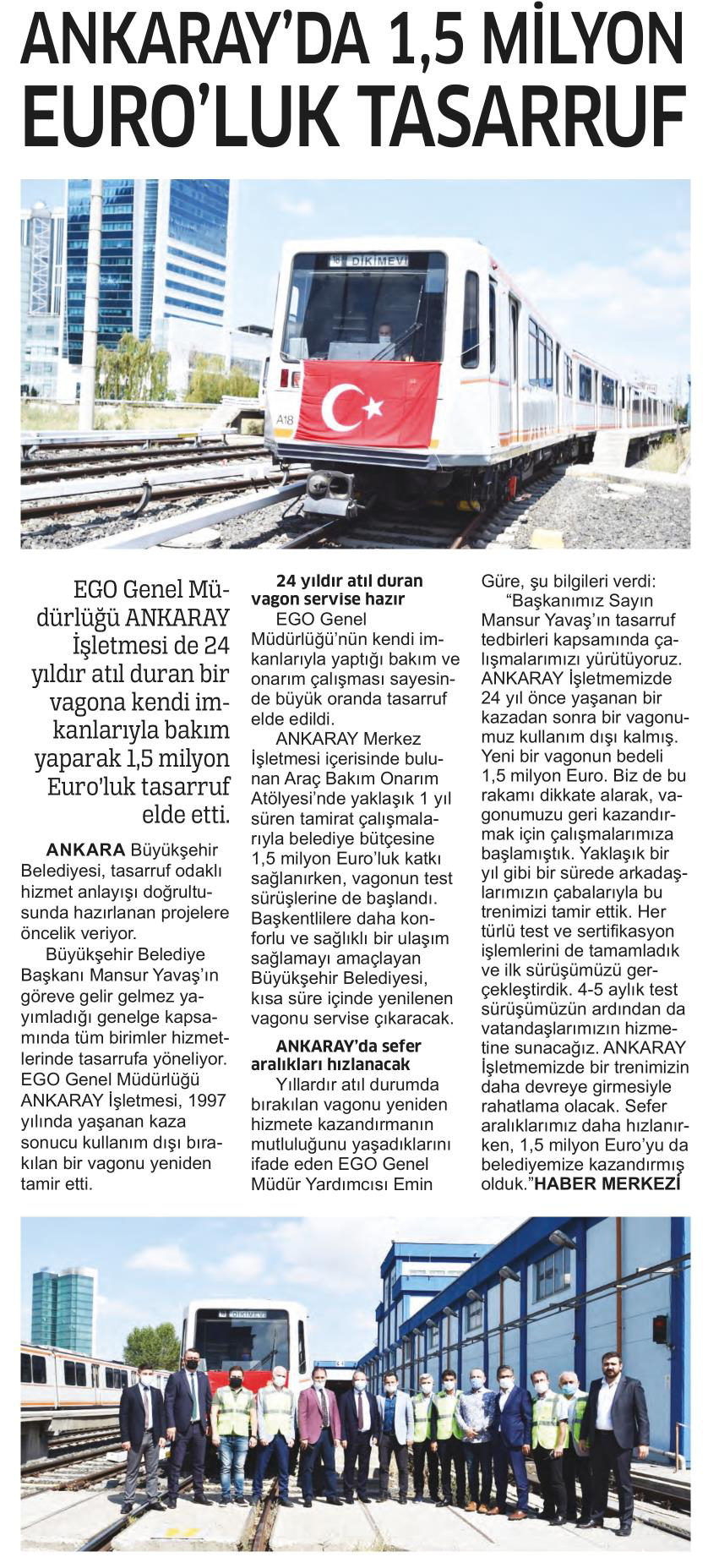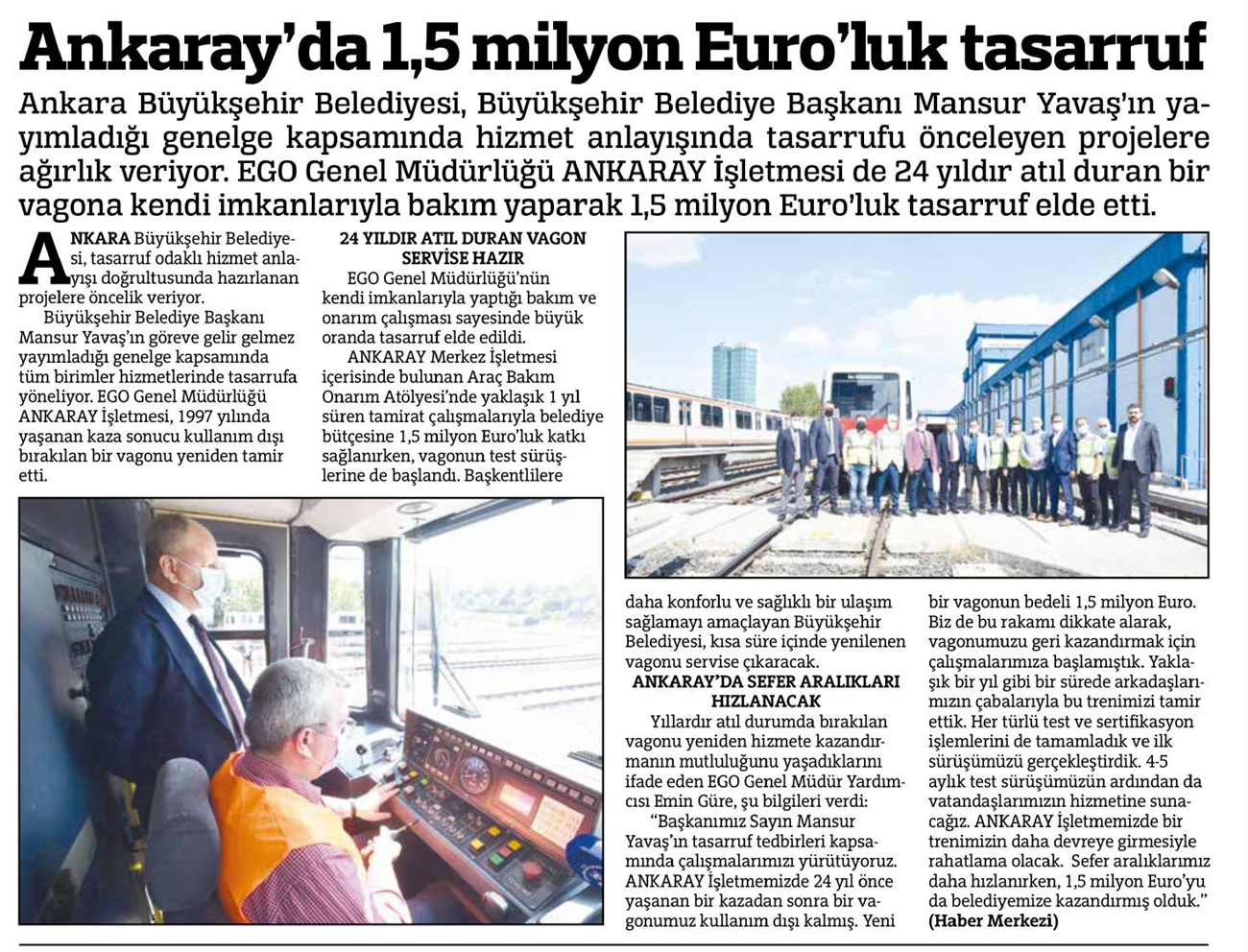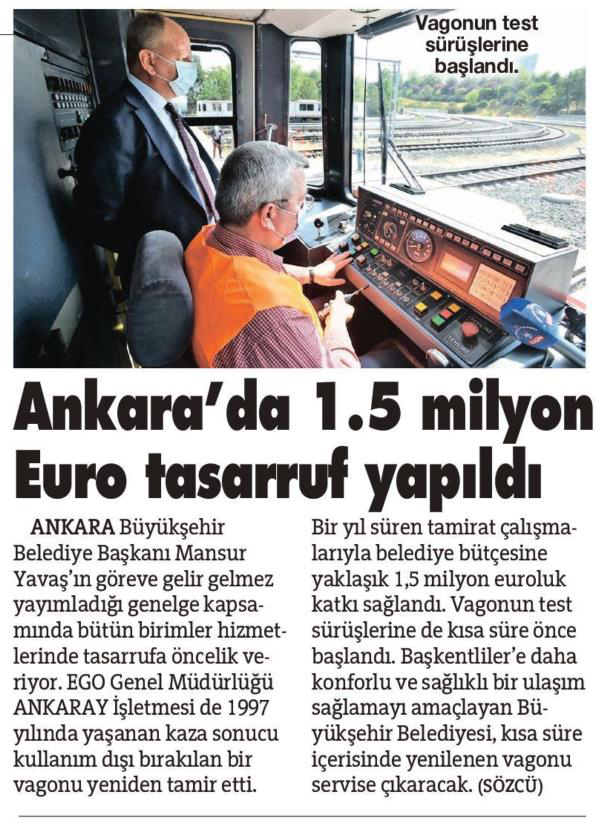 Sözcü / 18.08.2021 Ankaray’da 1,5 milyon euro’luk tasarruf yapıldı