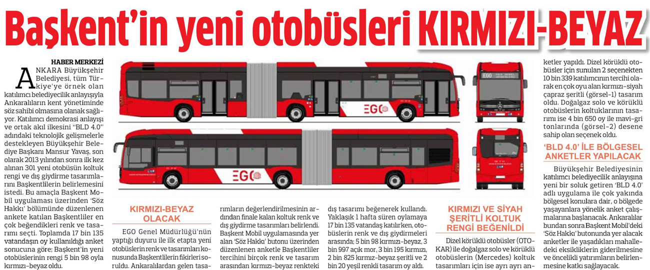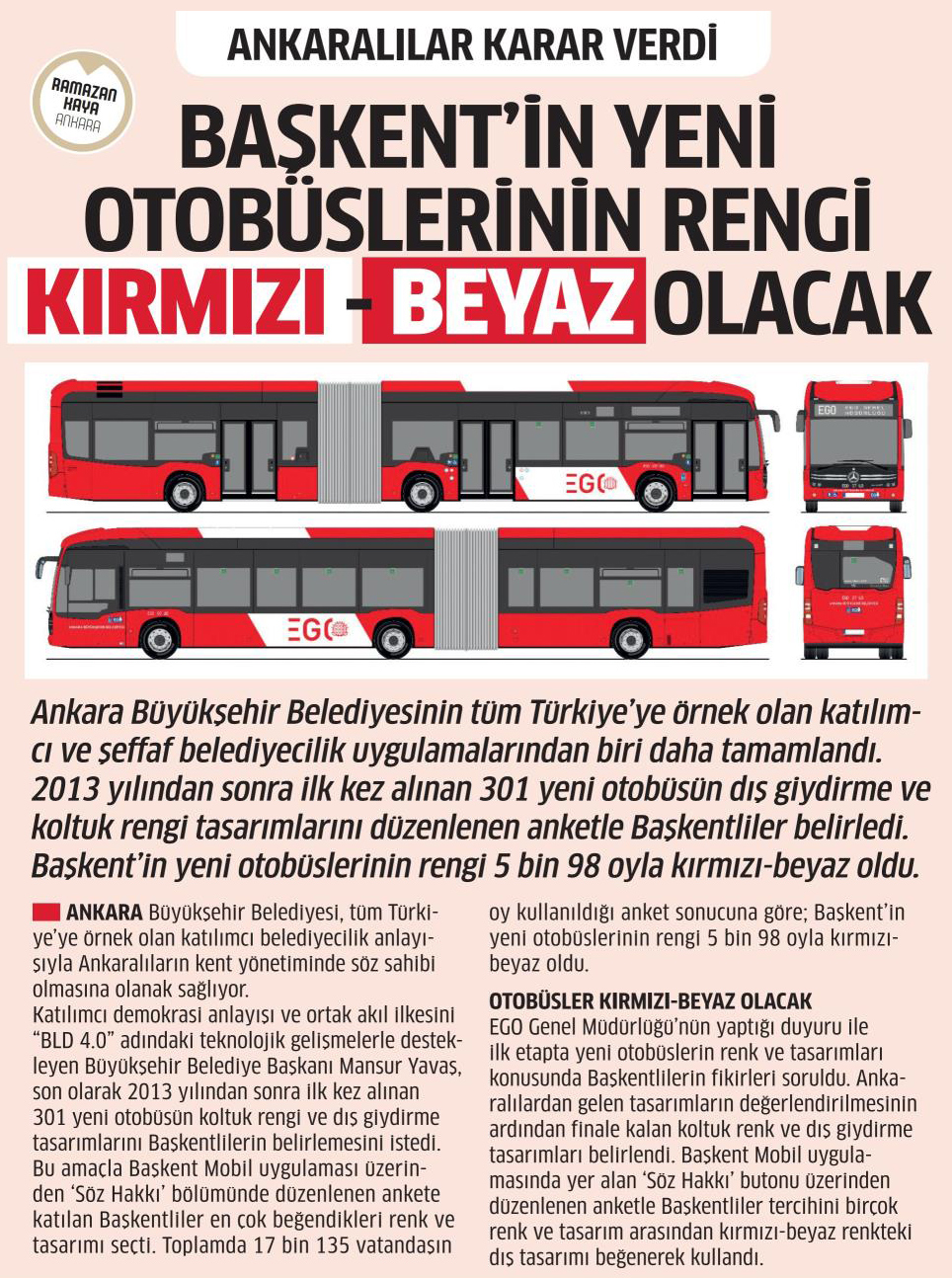 Milli Gazete Ankara / 09.06.2021 Yeni otobüslerinin rengi kırmızı-beyaz olacak