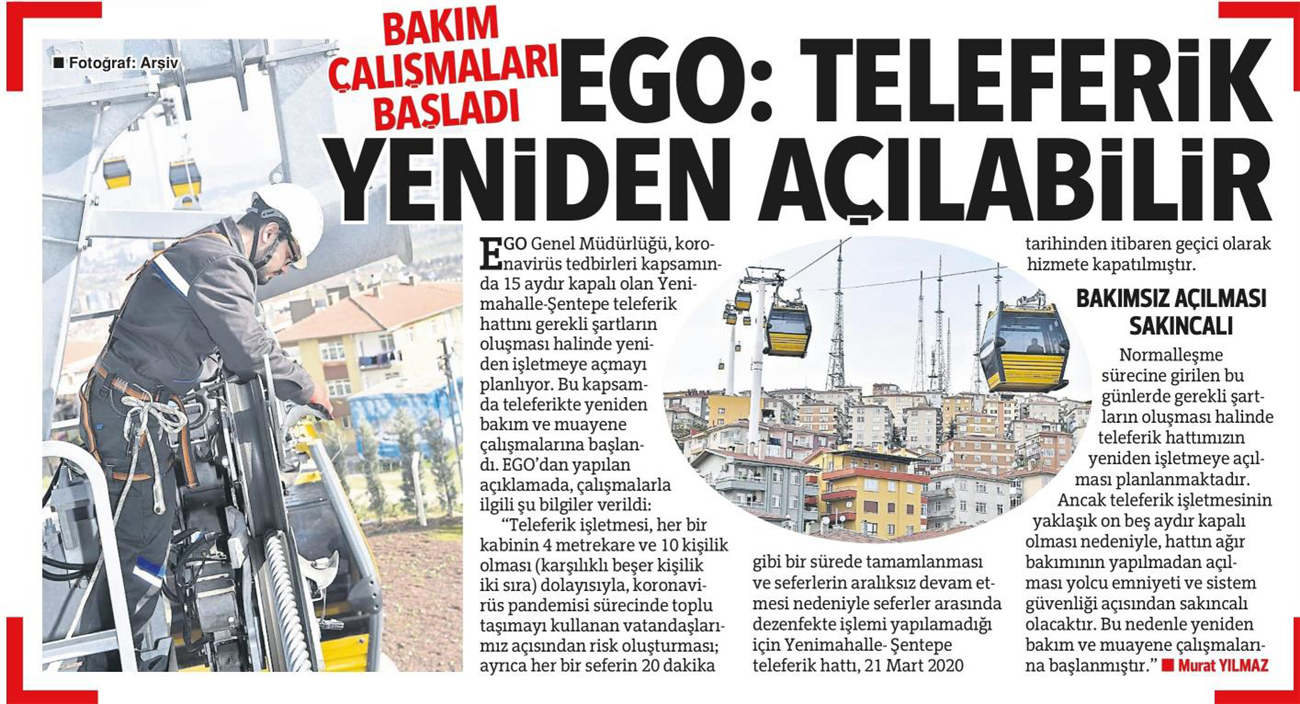 Hürriyet Ankara / 09.06.2021 EGO: teleferik yeniden açılabilir
