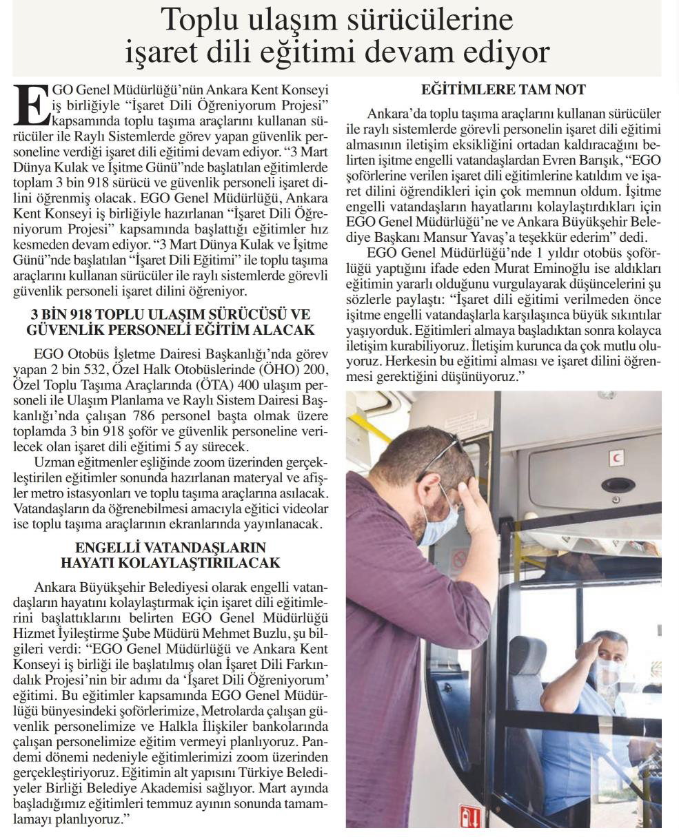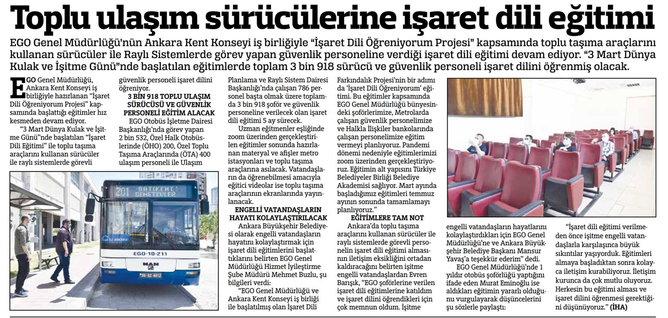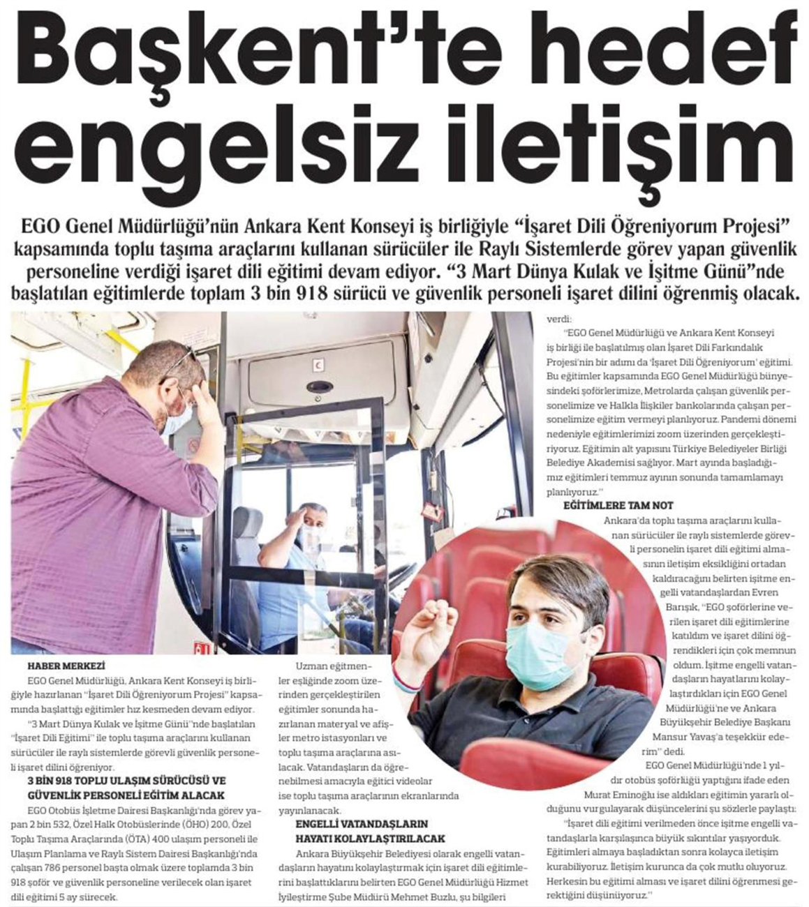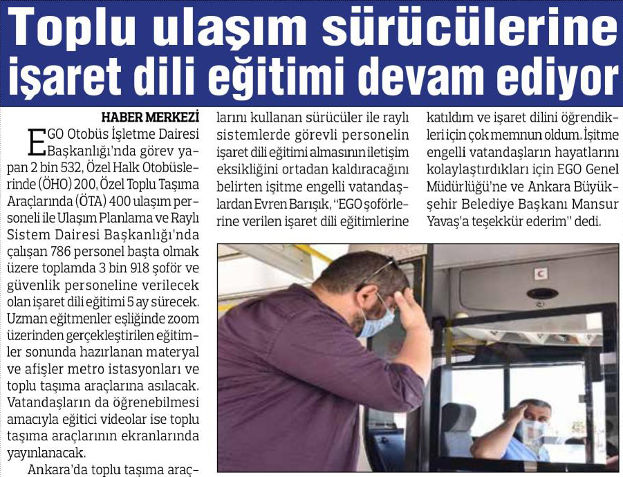Başkent Gazetesi / 12.06.2021 Toplu ulaşım sürücülerine işaret dili eğitimi devam ediyor