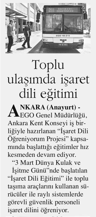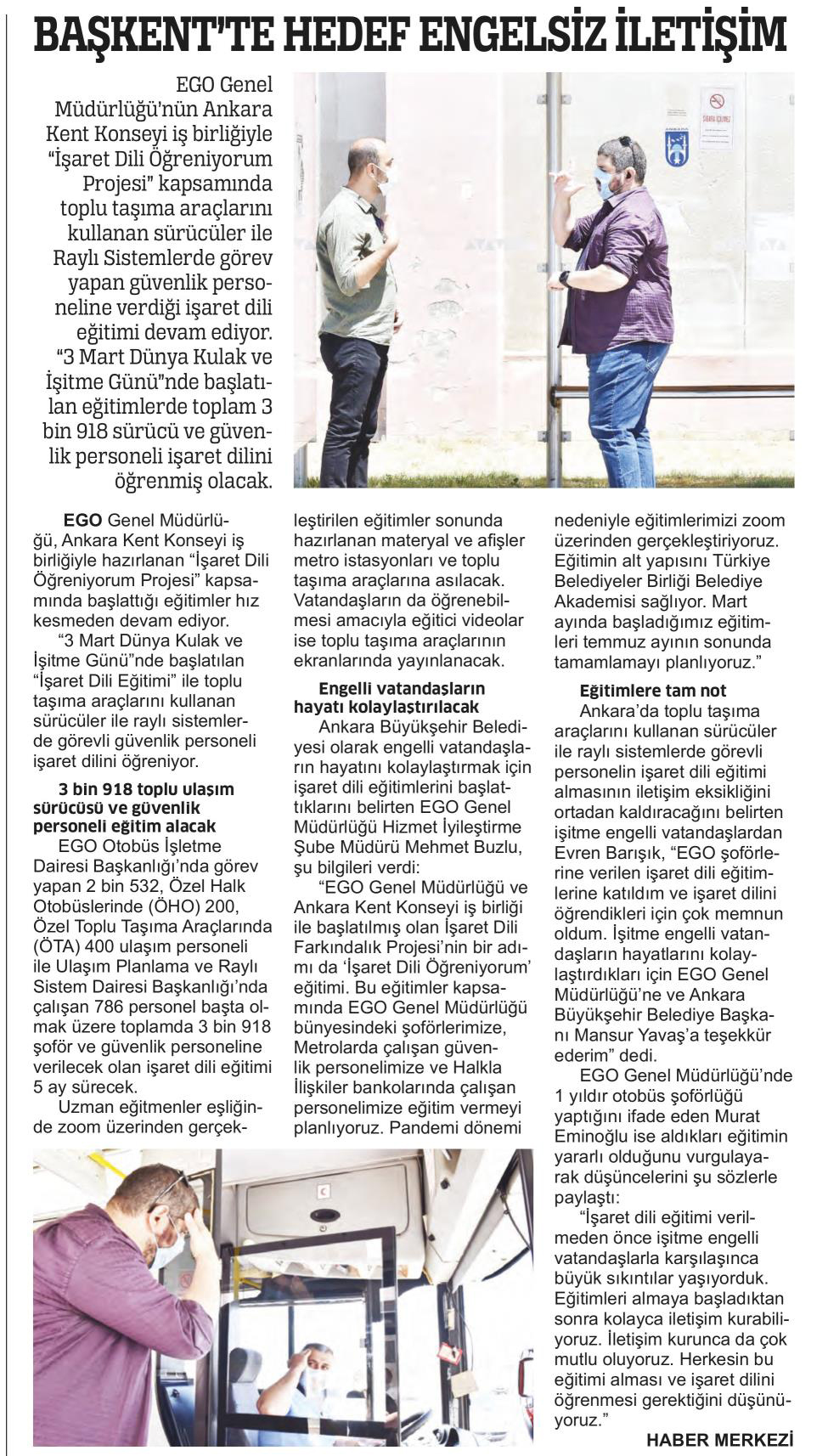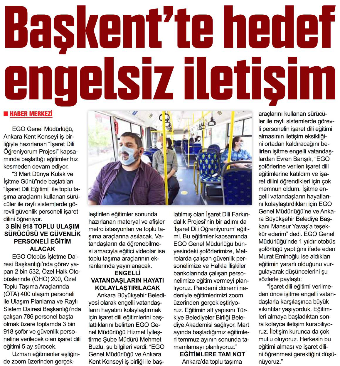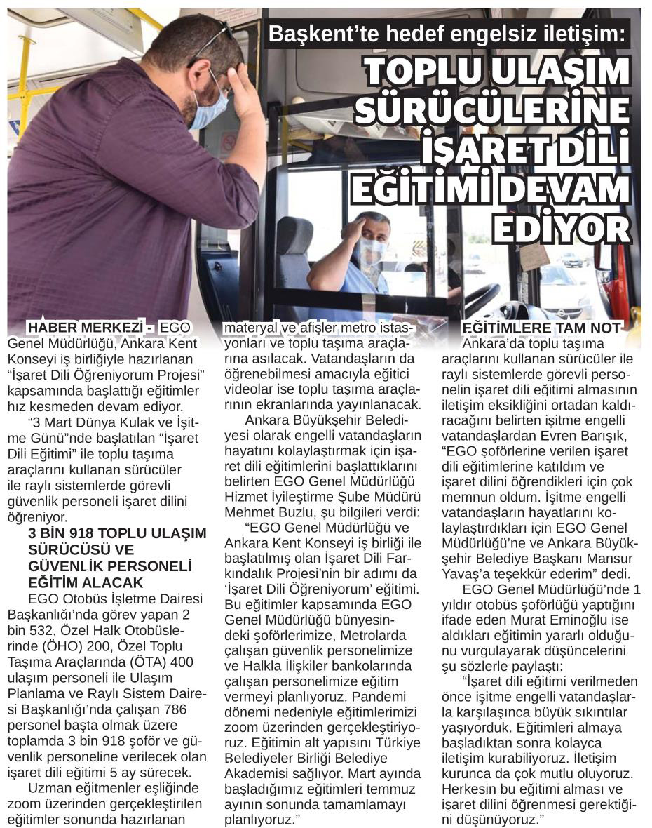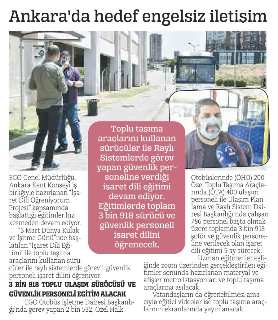 Başkent Gazetesi / 12.06.2021 Toplu ulaşım sürücülerine işaret dili eğitimi devam ediyor