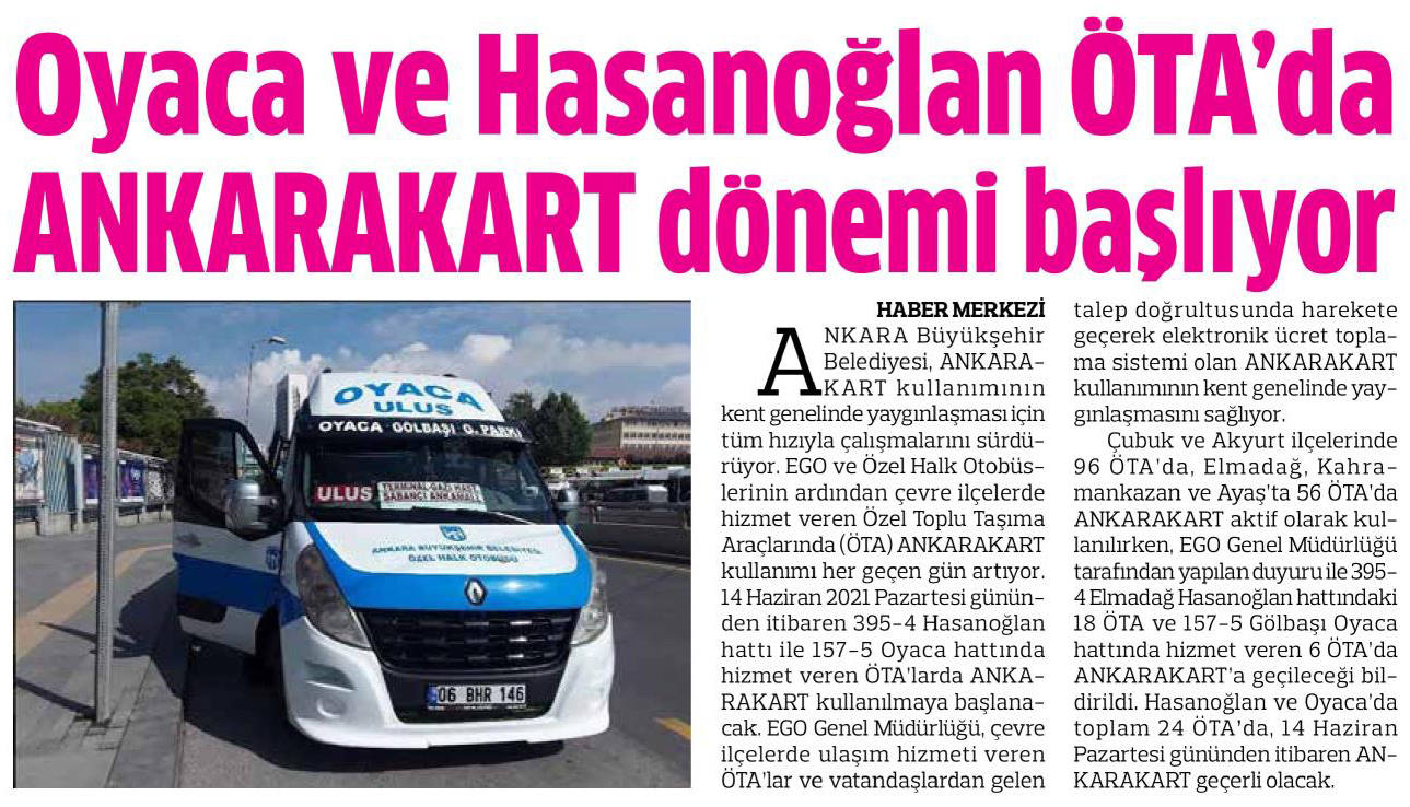 Anadolu / 14.06.2021 Oyaca ve Hasanoğlan ÖTA’da Ankarakart dönemi başlıyor