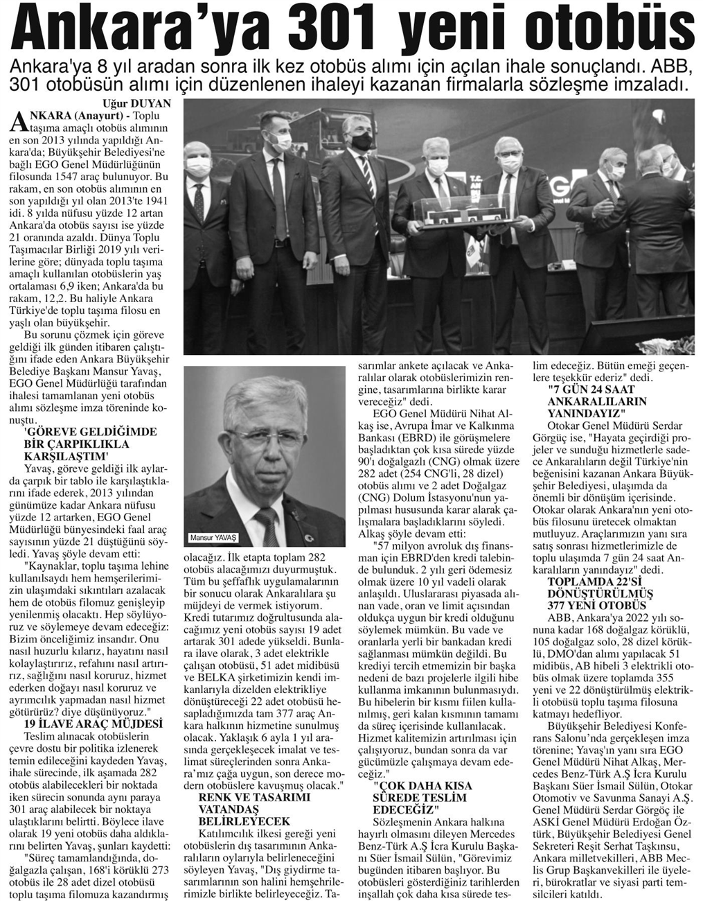 Anayurt / 27.05.2021 Ankara’ya 301 yeni otobüs