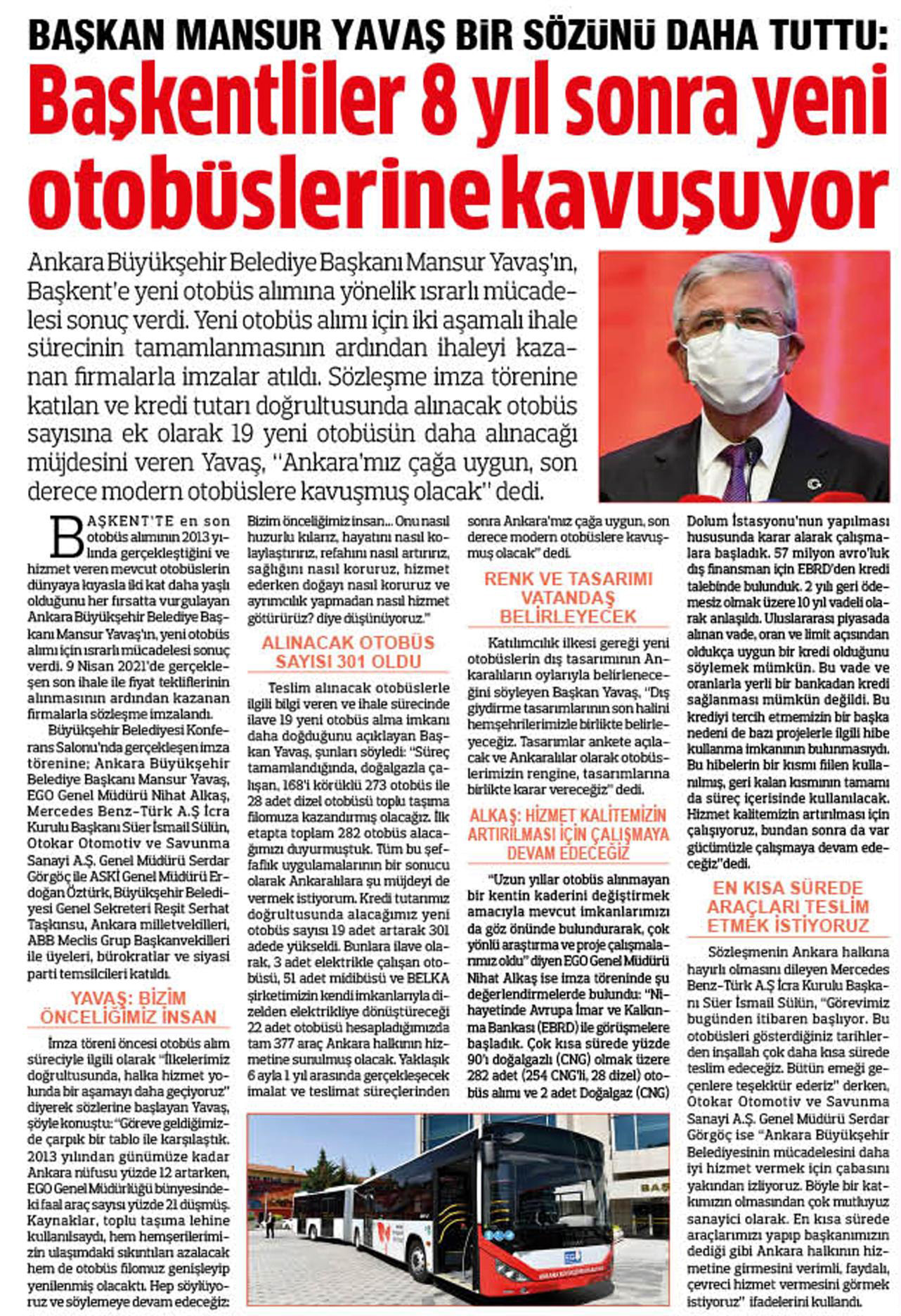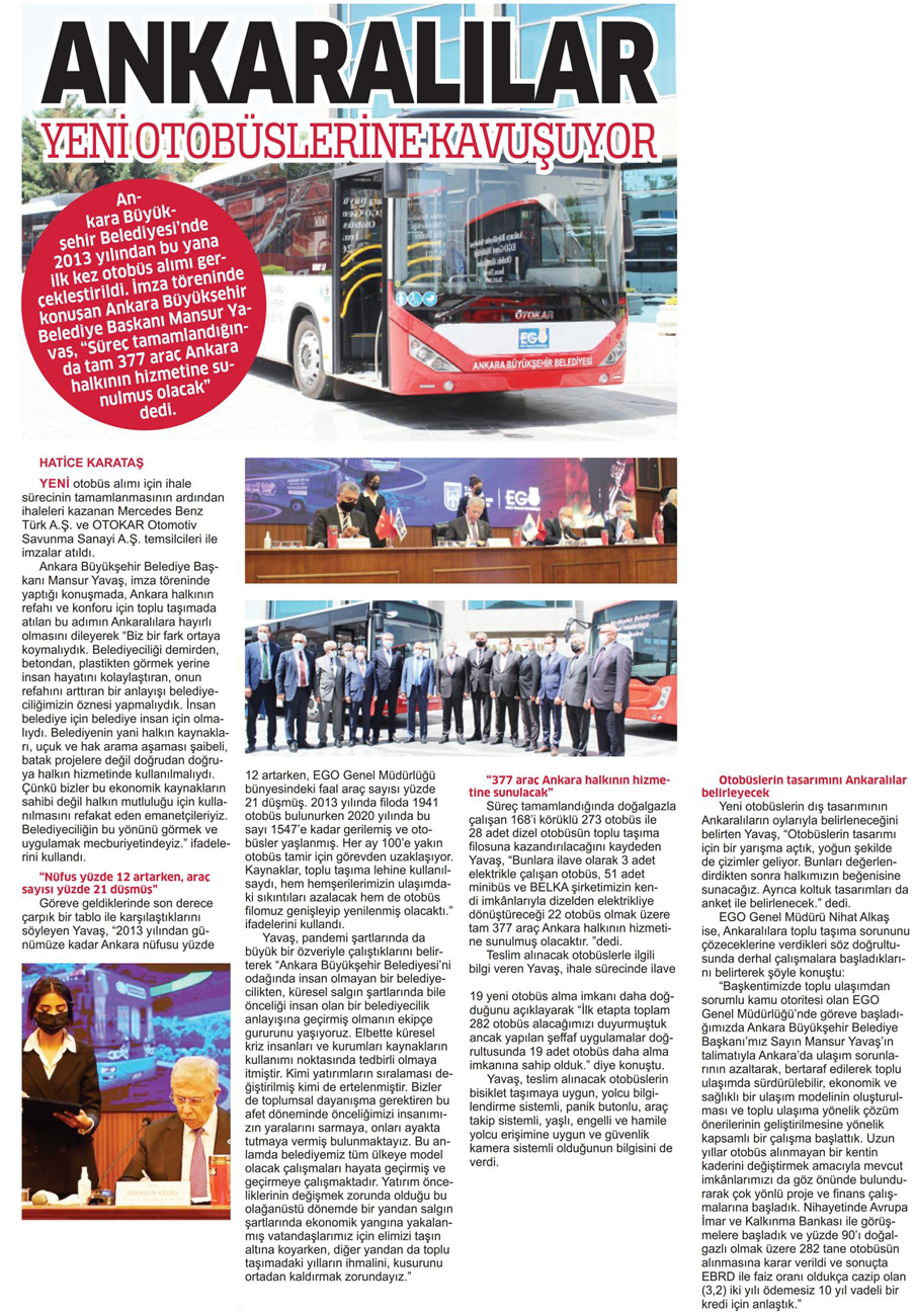 Milli Gazete / 28.05.2021 Başkentliler 8 yıl sonra yeni otobüslerine kavuşuyor