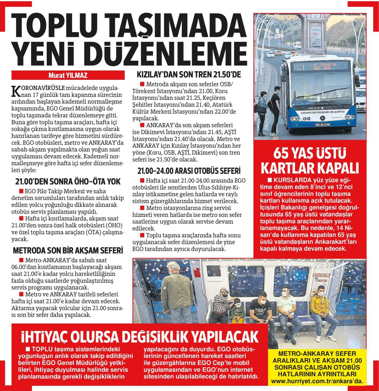 Hürriyet Ankara / 18.05.2021 Toplu taşımada yeni düzenleme