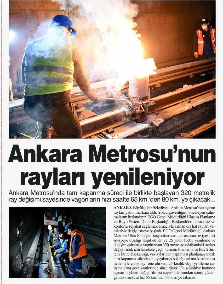 Kentiçi Toplu Taşıma / 17.05.2021 Ankara Metrosu'nun rayları yenileniyor