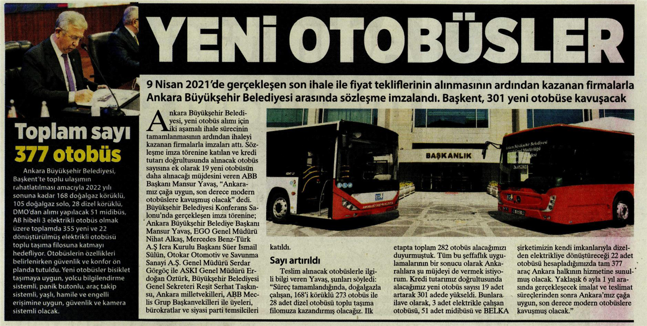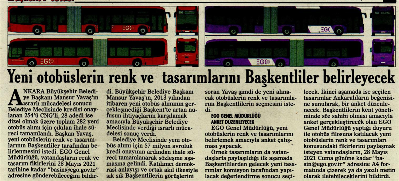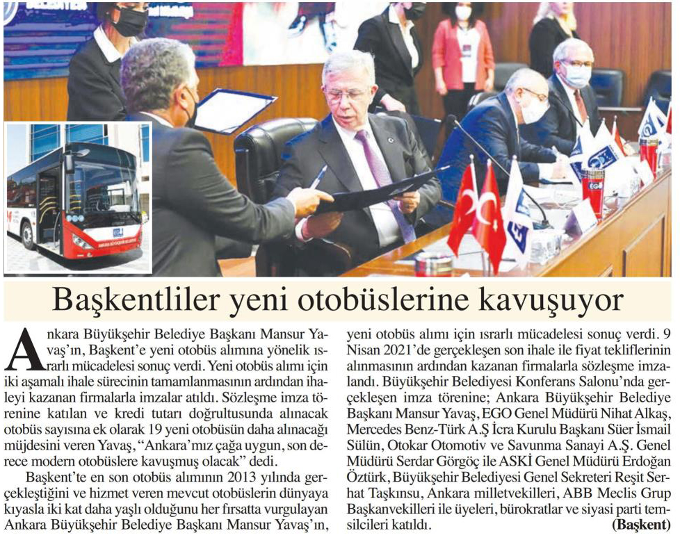 Milliyet Ankara / 27.05.2021 Yeni otobüsler