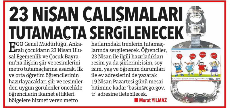 Hürriyet Ankara / 13.04.2021 23 Nisan çalışmaları tutamaçta sergilenecek