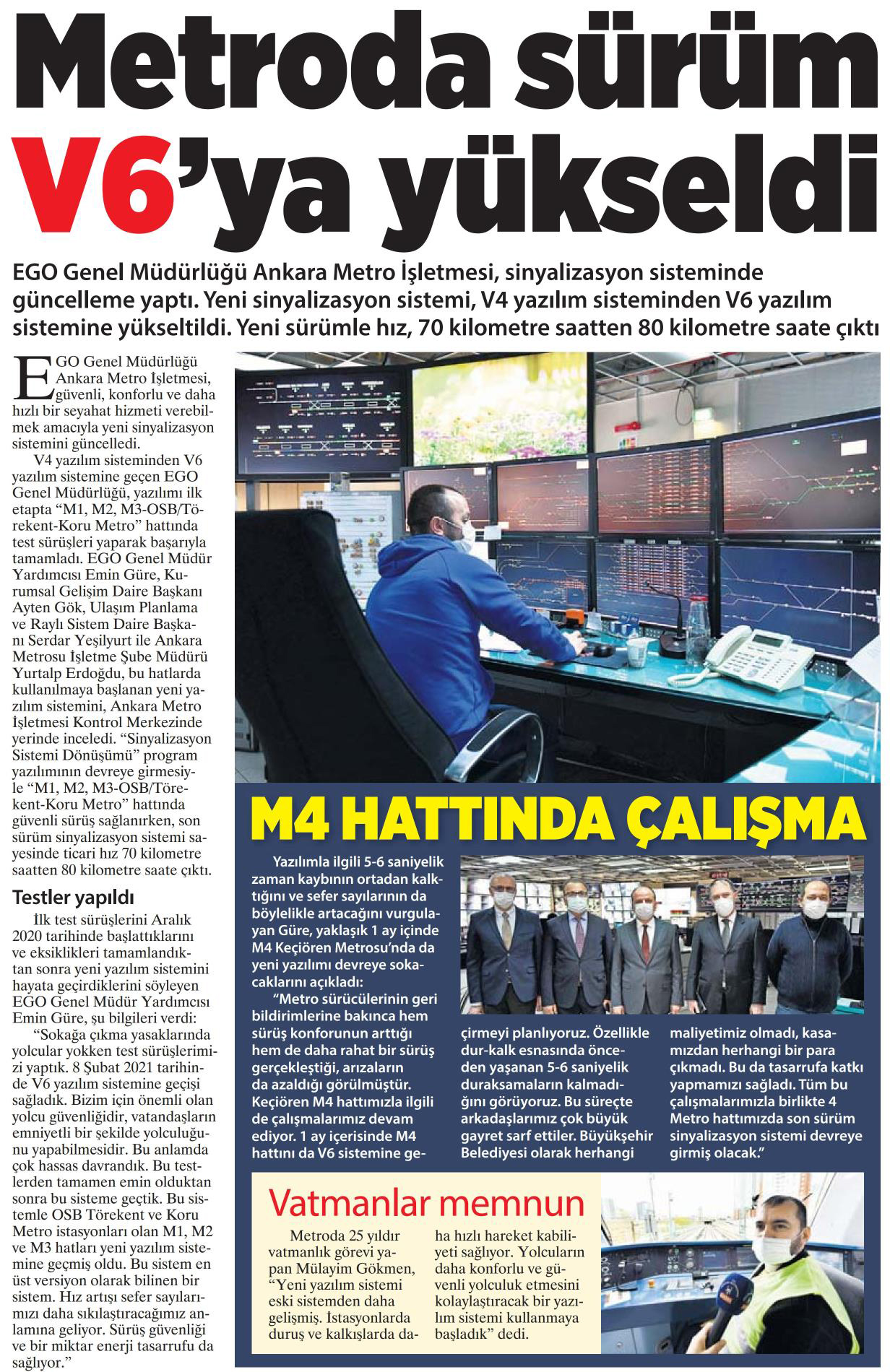 Milliyet Ankara / 16.04.2021 Metroda sürüm V6’ya yükseldi