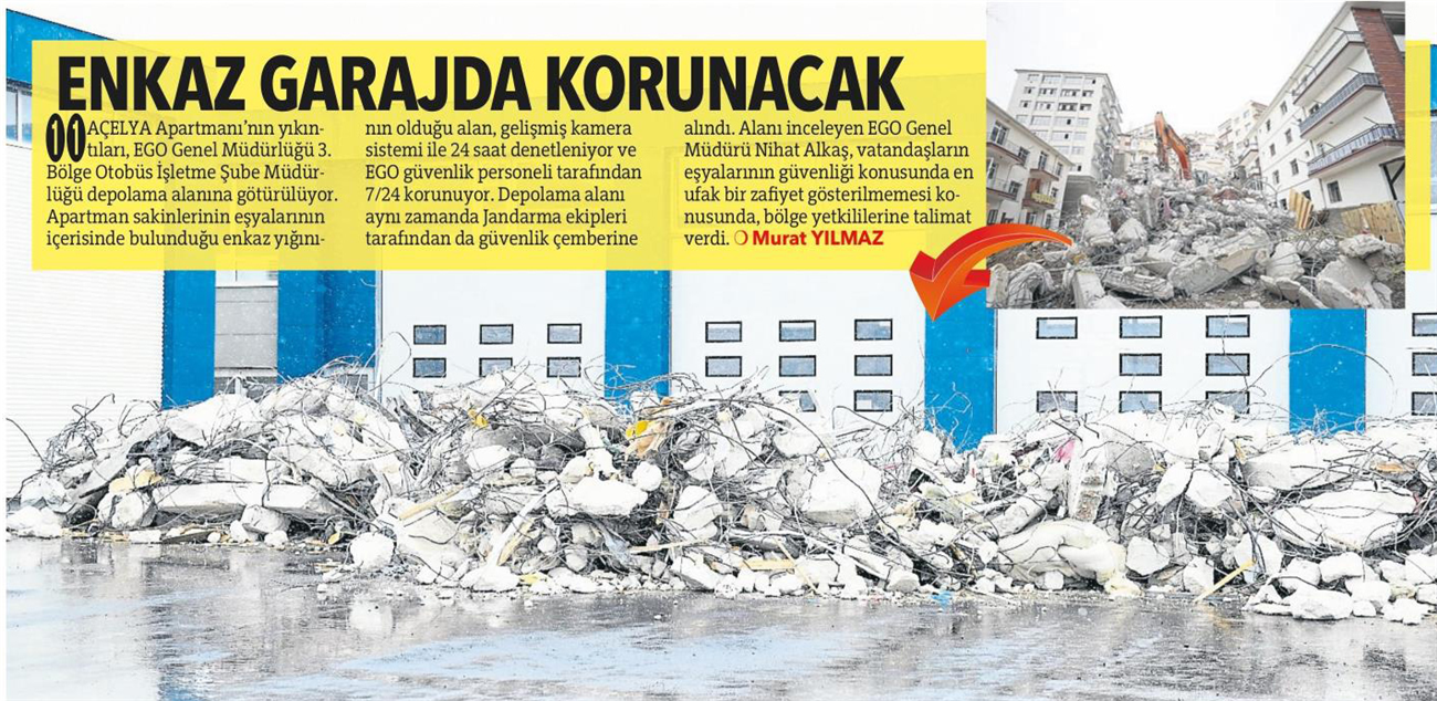 Hürriyet Ankara / 17.04.2021 Enkaz garajda korunacak