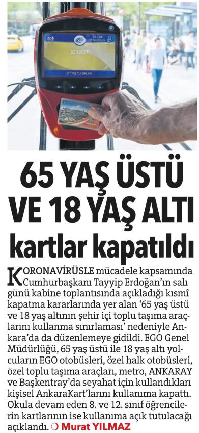 Hürriyet Ankara / 16.04.2021 Toplu taşımada yeni düzenleme