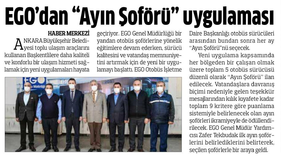 Anadolu / 19.03.2021 EGO’dan “Ayın Şoförü” uygulaması