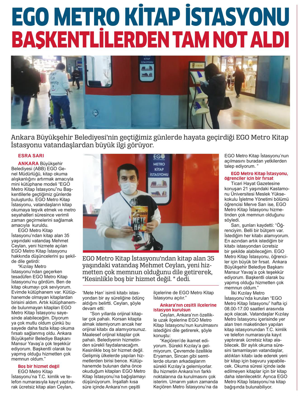 Ticari Hayat / 23.03.2021 EGO metro kitap istasyonu tam not aldı