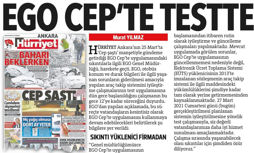 Hürriyet Ankara / 27.03.2021 EGO CEP'TE testte