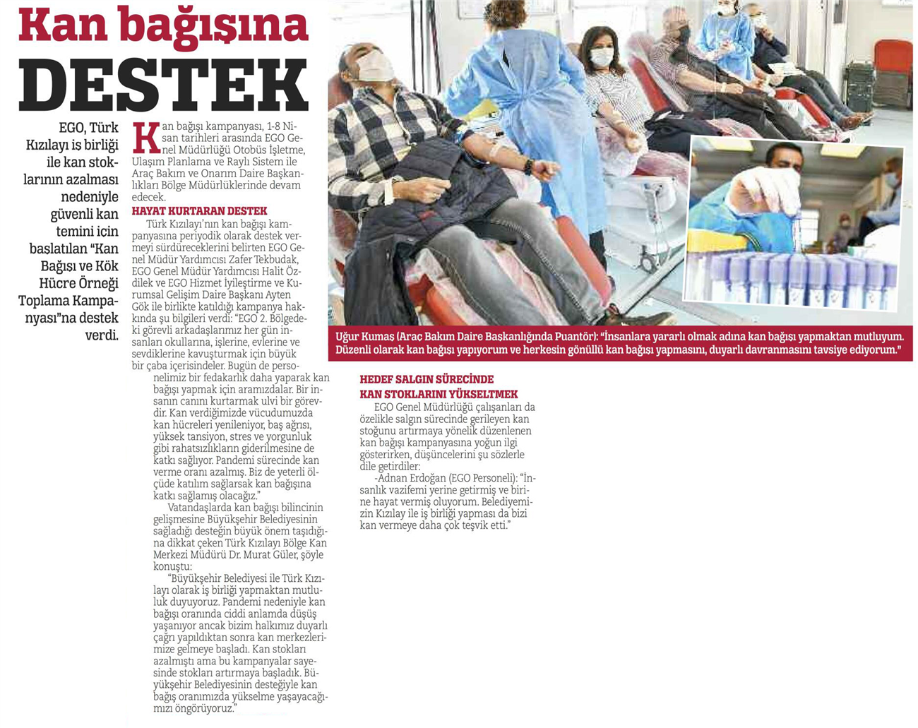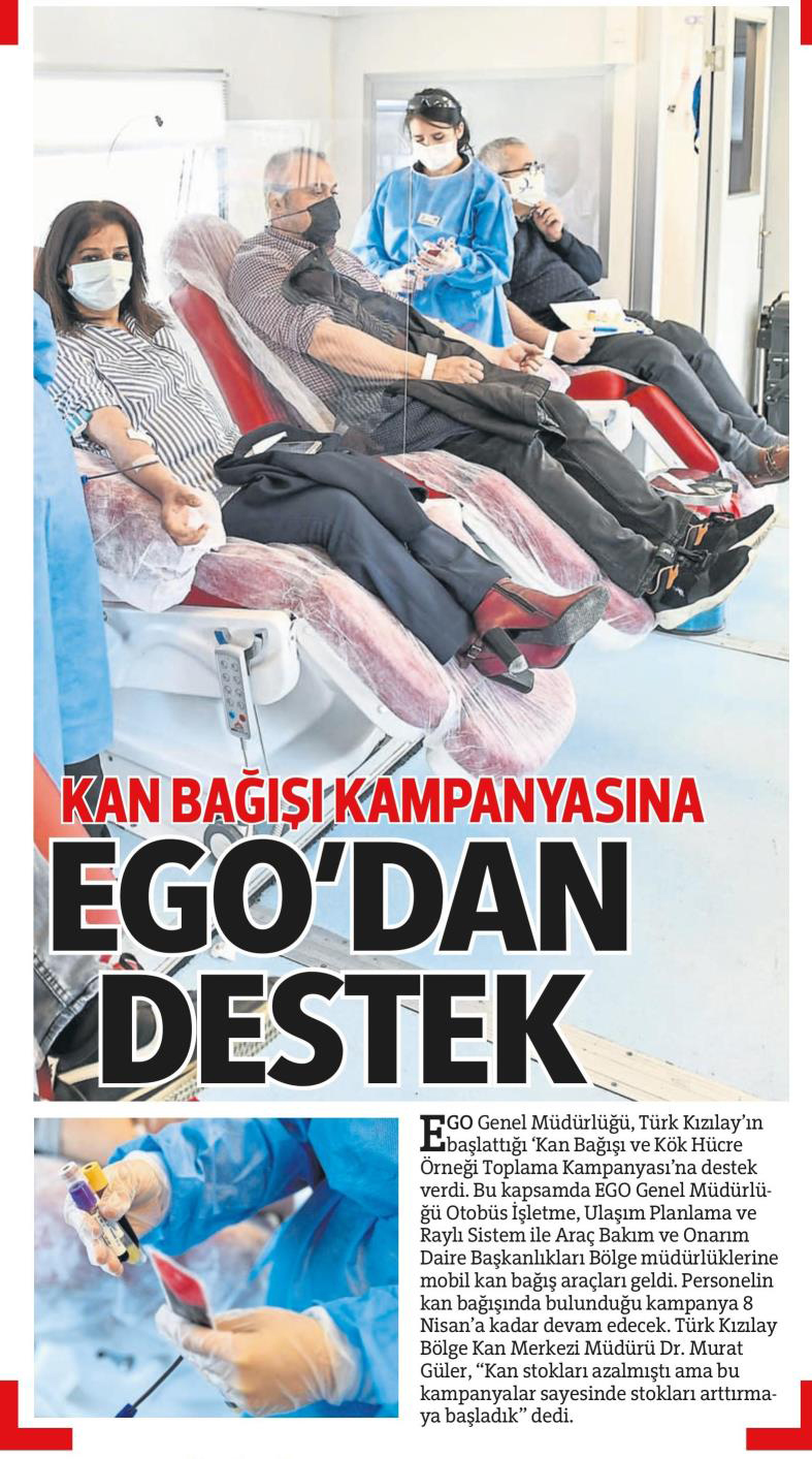 Milli Gazete / 03.04.2021 EGO'dan kan bağışı kampanyasına destek