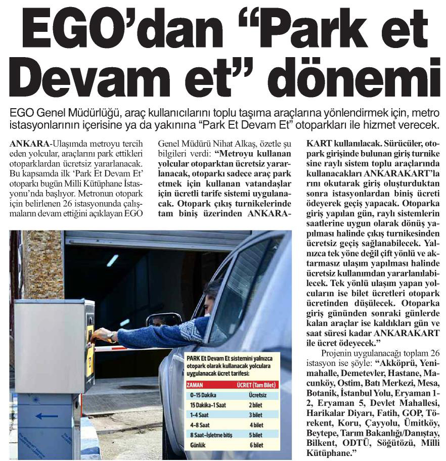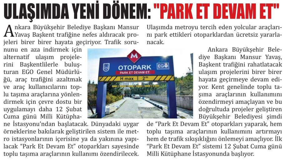 Kentiçi Toplu Taşıma / 01.03.2021 EGO’dan “Park Et Devam Et” dönemi