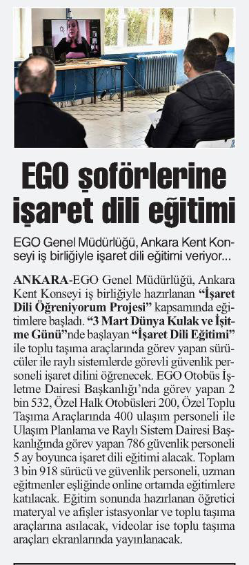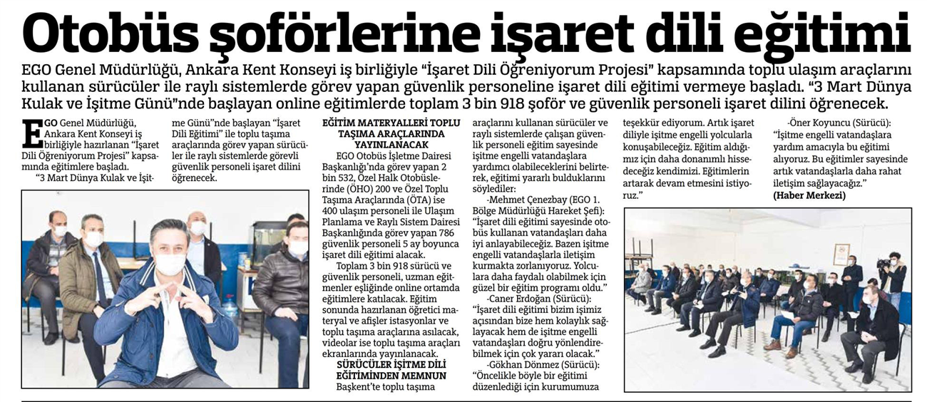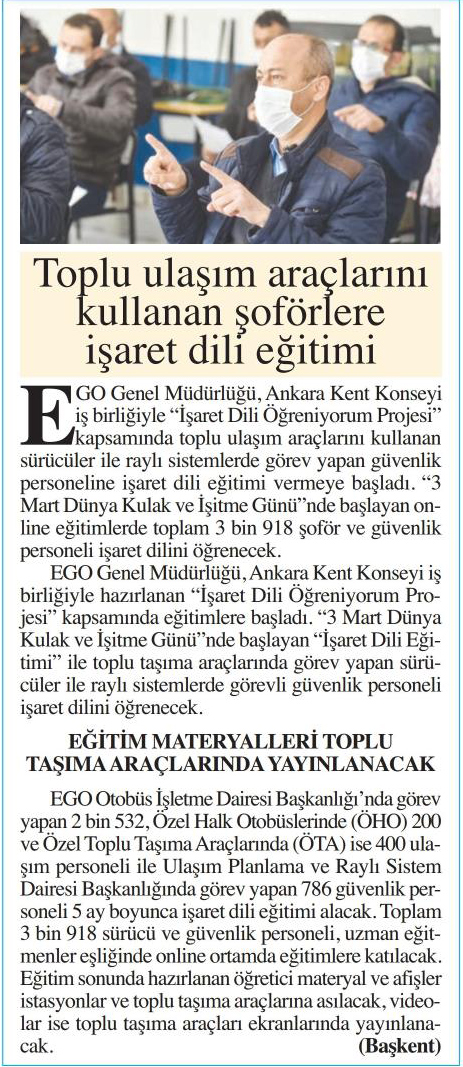 Başkent Gazetesi / 05.03.2021 Toplu ulaşım araçlarını kullanan şoförlere işaret dili eğitimi