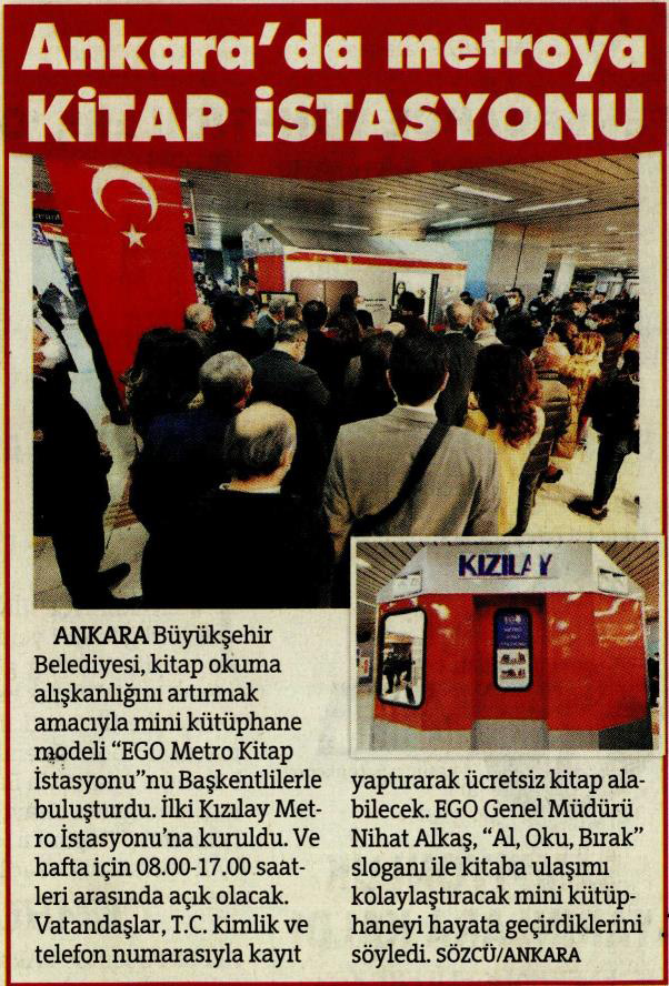 Sözcü / 15.03.2021 Ankara'da metroya kitap istasyonu
