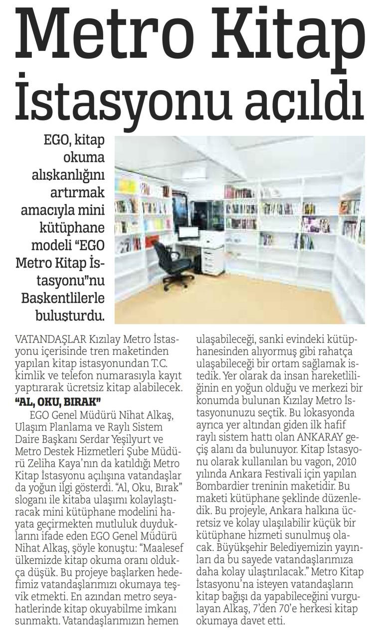 Milliyet Ankara / 15.03.2021 Kızılay metroya mini kütüphane